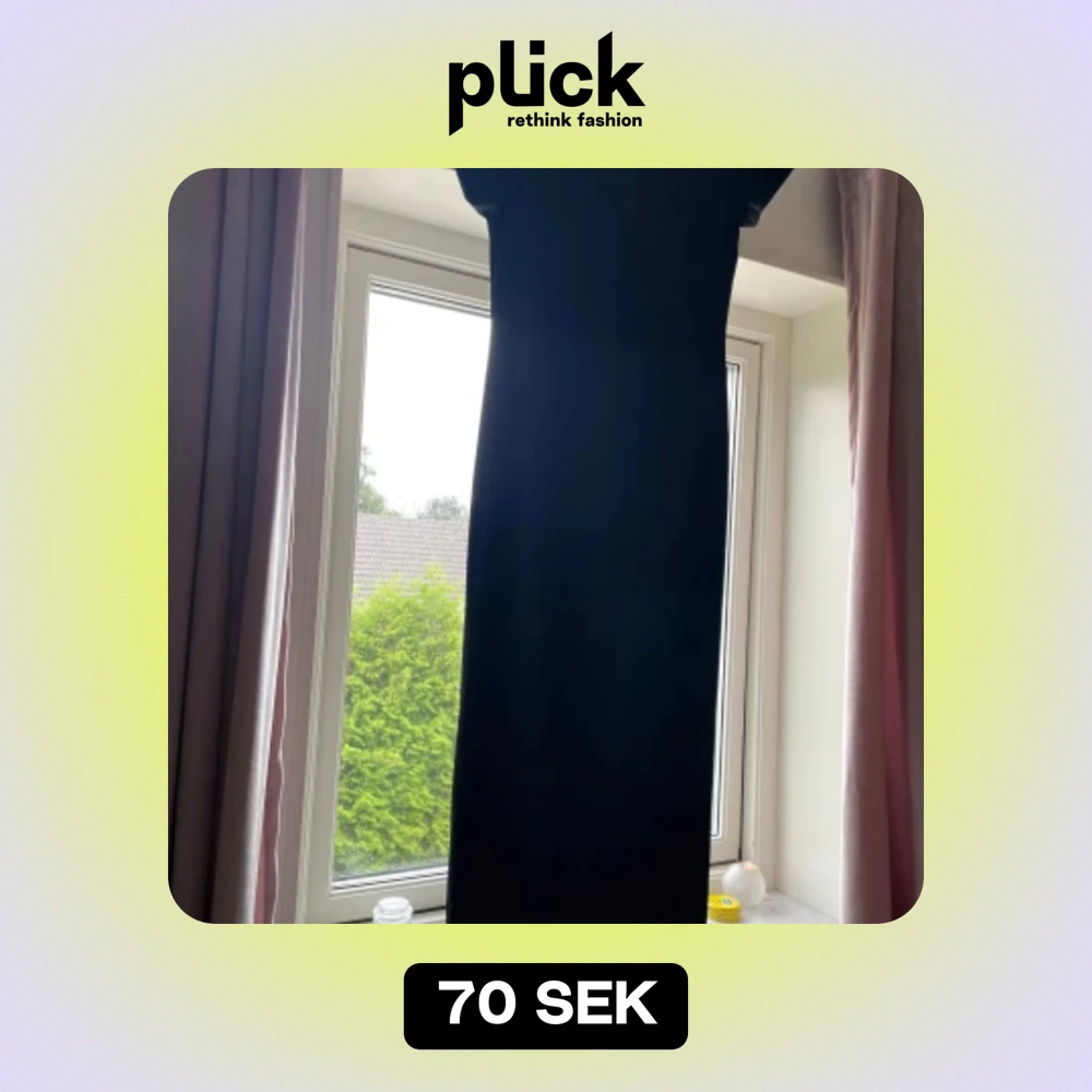 Vacker lång svart klänning super fin och sitter så fint och tajt. Säljer då den inte riktigt satt så bra på just mig. Helt oanvänd.