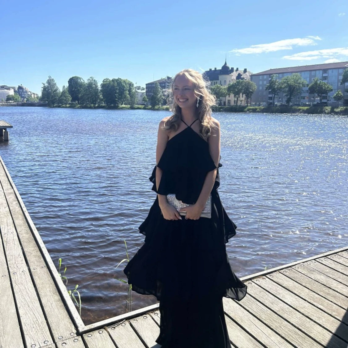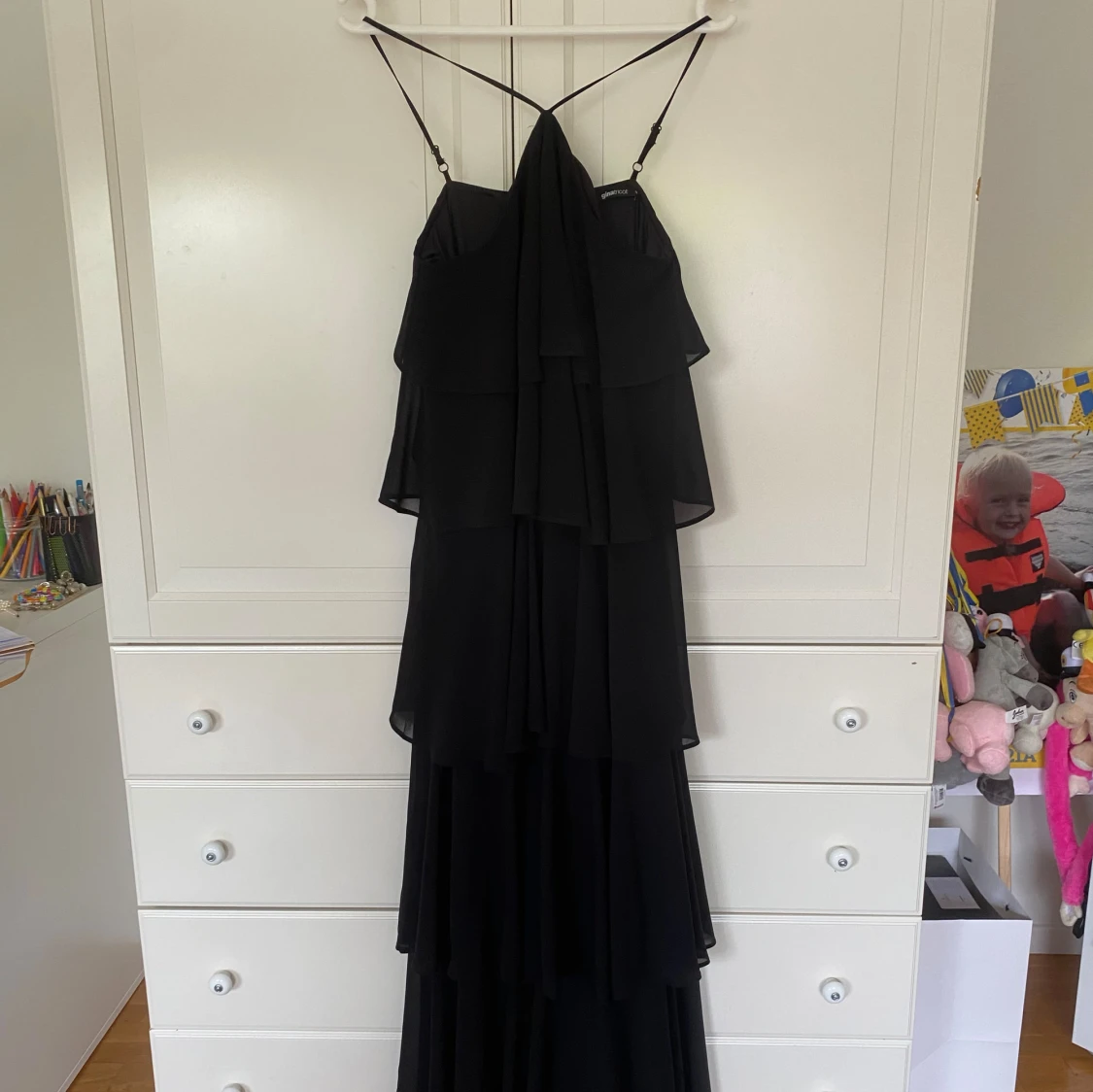 Svårt, lång volangklänning (flera lager) som endast är använd 1 gång! Vanlig i ryggen. Superfin i XS från gina tricot!😍