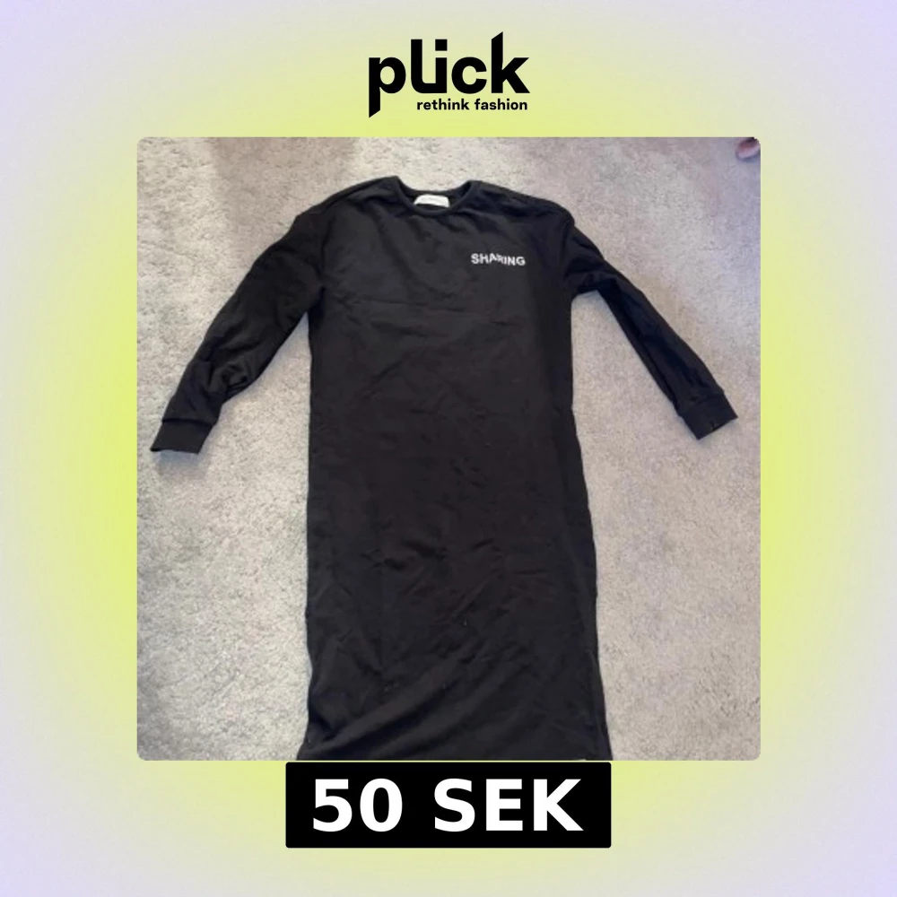 Svart långärmad klänning från I dig denim med trycket 'SHARING' på bröstet. Klänningen har rund halsringning och är gjord i mjuk bomull. Perfekt för en avslappnad och stilren look.