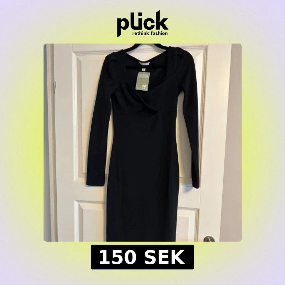 Snygg svart långärmad klänning från H&M med figurnära passform och djupare urringning. Klänningen har en stilren design och är perfekt för dig som gillar en enkel men elegant look.