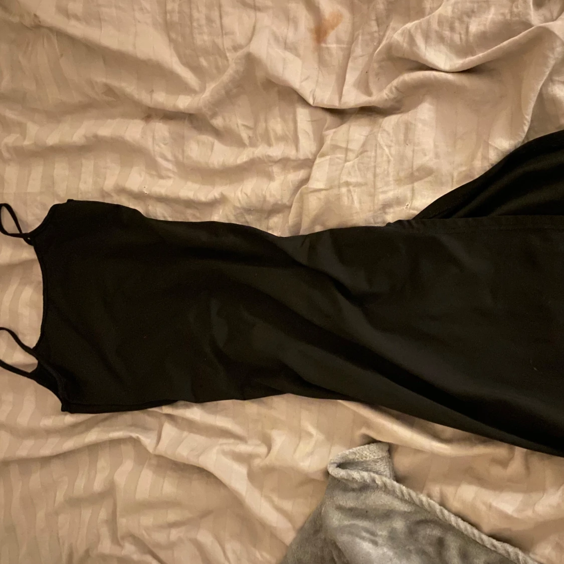 Säljer en svart långklänning med smala axelband och slits på sida som aldrig är använd. Klänningen har en figurnära passform och är tillverkad i ett stretchigt material!❤️