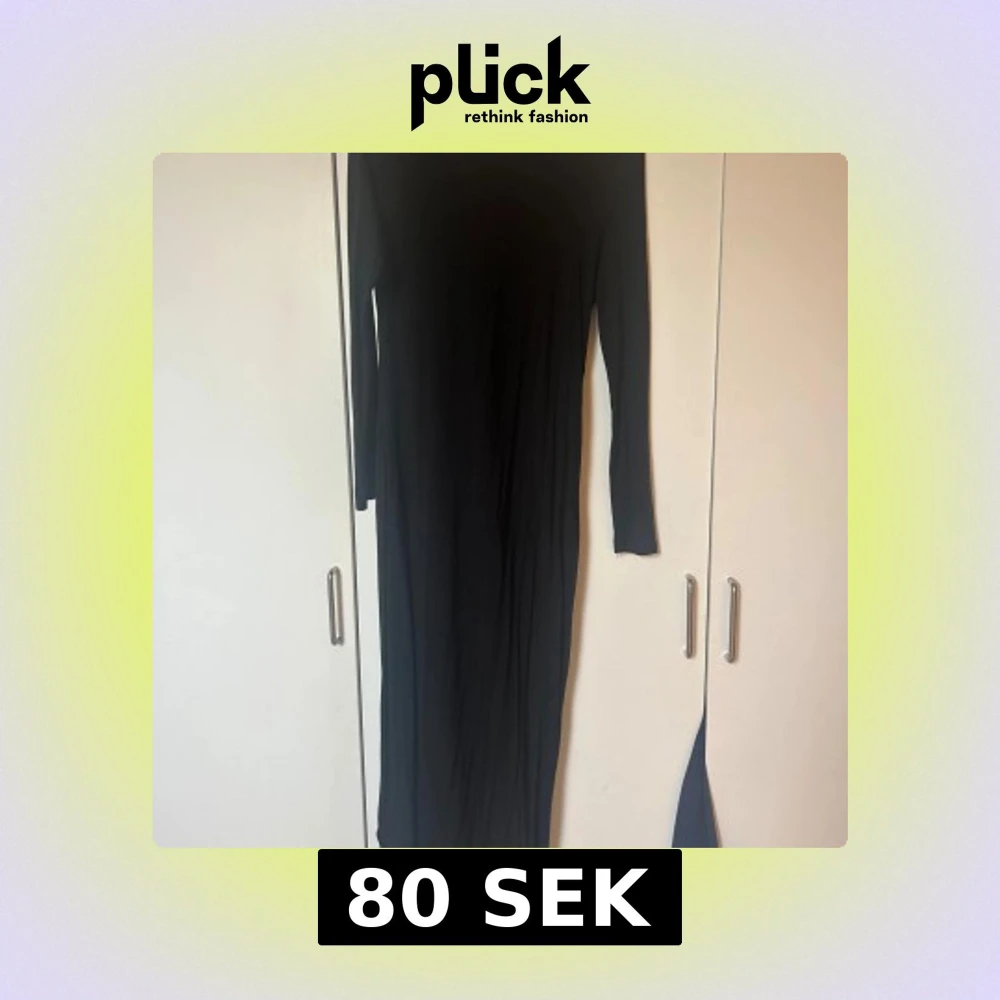 Elegant svart långklänning med långärmad design. Perfekt för en stilren look. Klänningen har en enkel och tidlös stil som passar till många tillfällen.