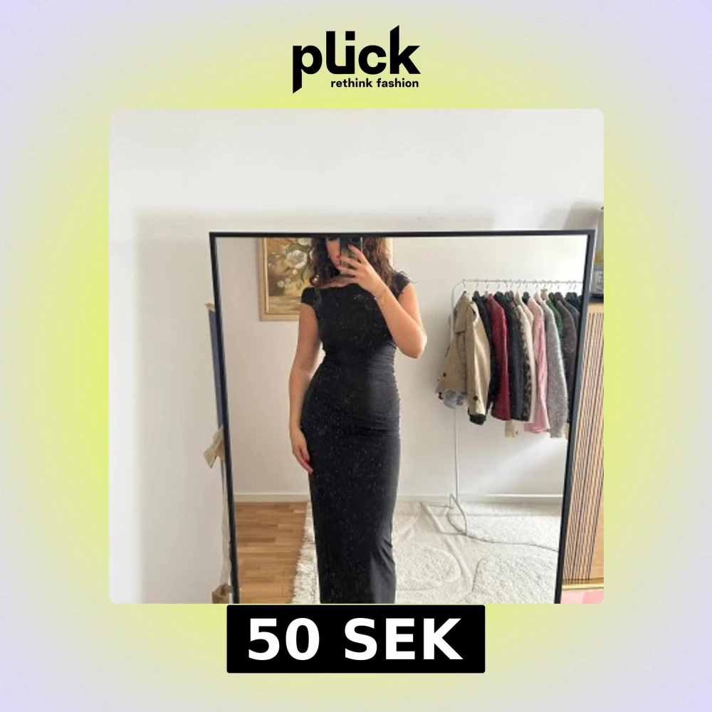 Supersnygg svart långklänning från SHEIN i storlek M. Klänningen har en tight passform, och är offshoulder. Materialet är mjukt och stretchigt, perfekt för att framhäva figuren.