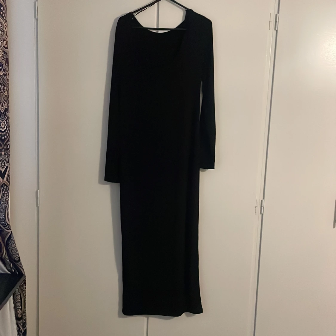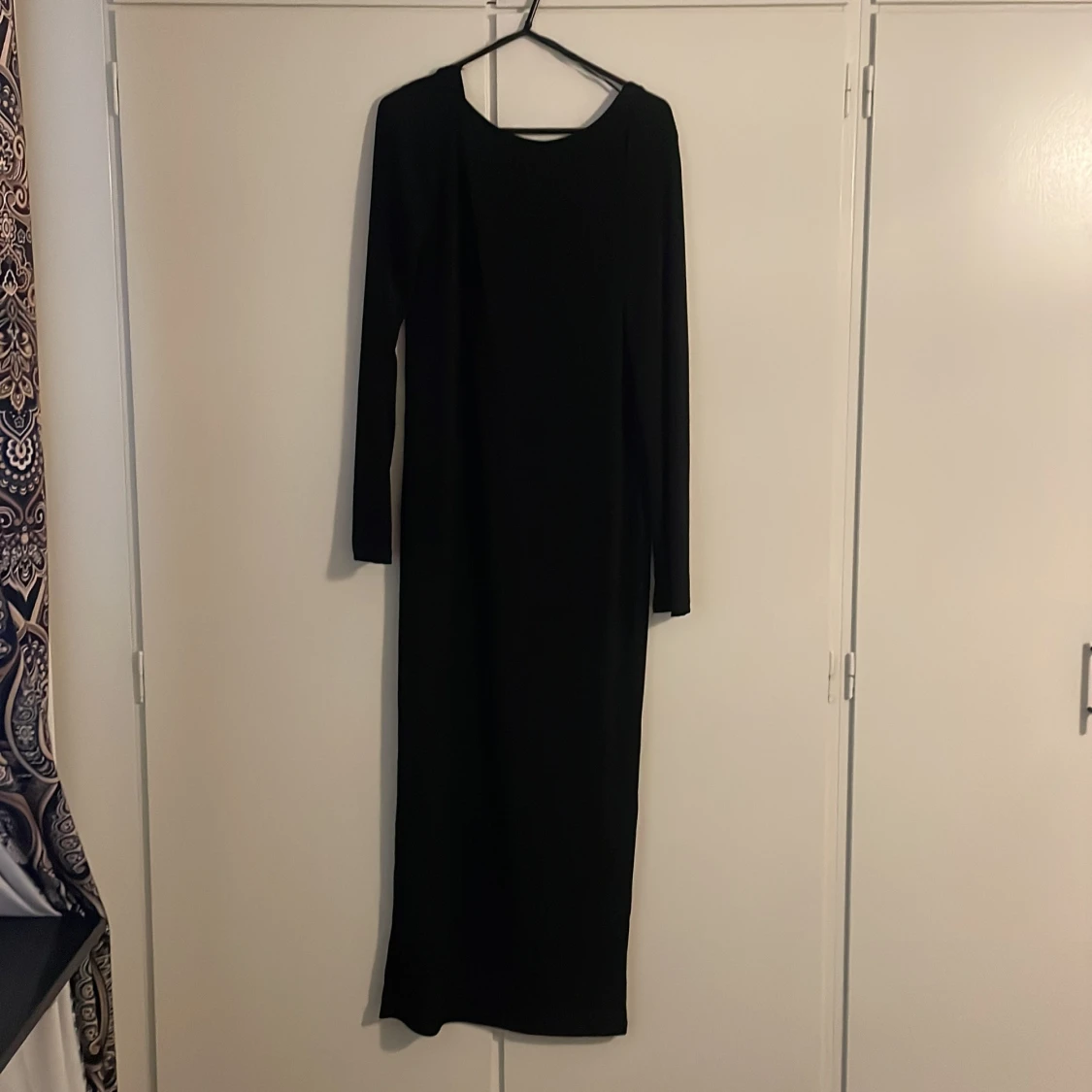 En stilren svart långklänning från The Black Label Collection. Klänningen har lång ärm och rak passform med backless uringad. Perfekt för dig som gillar en minimalistisk och elegant look.
