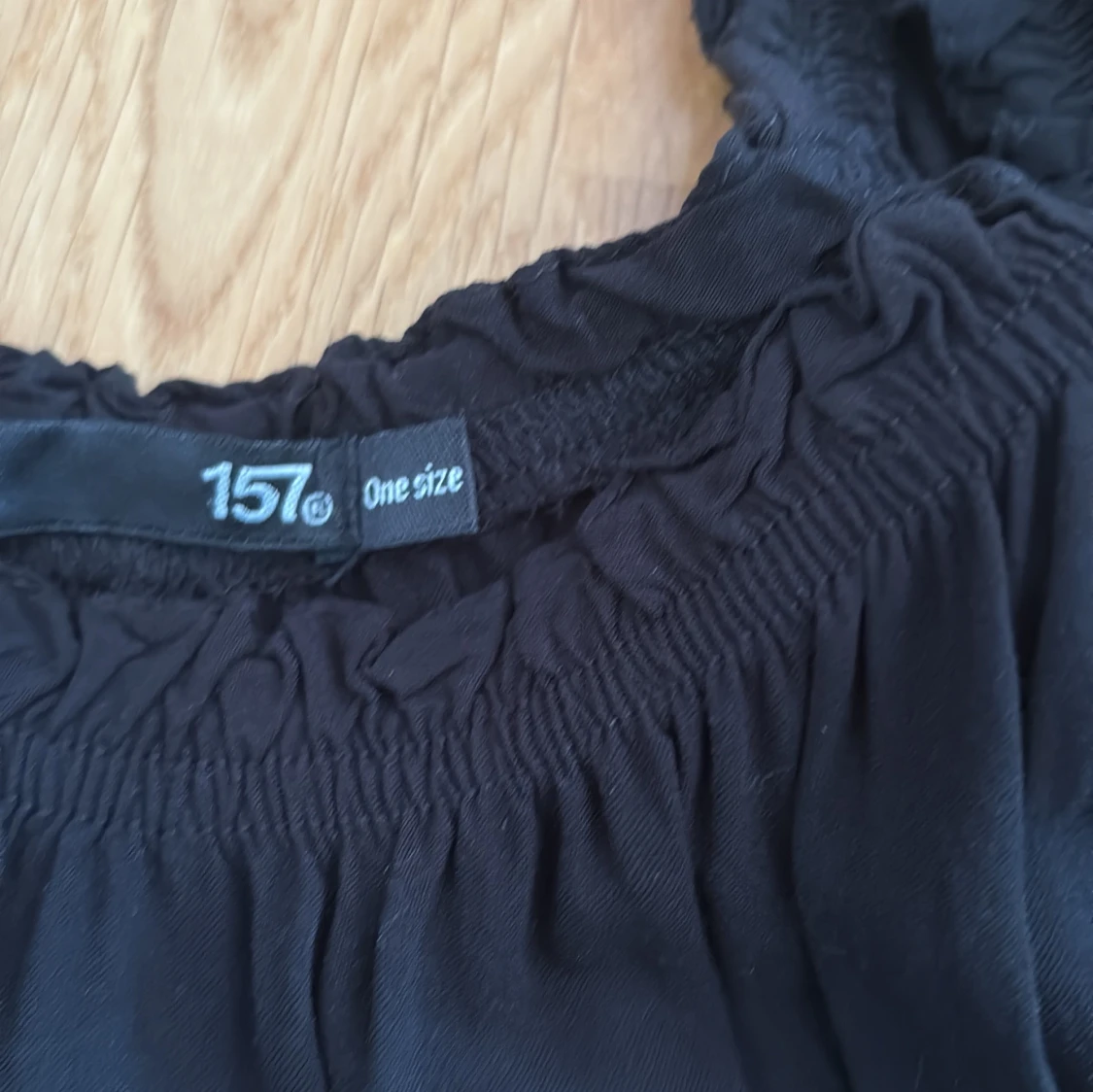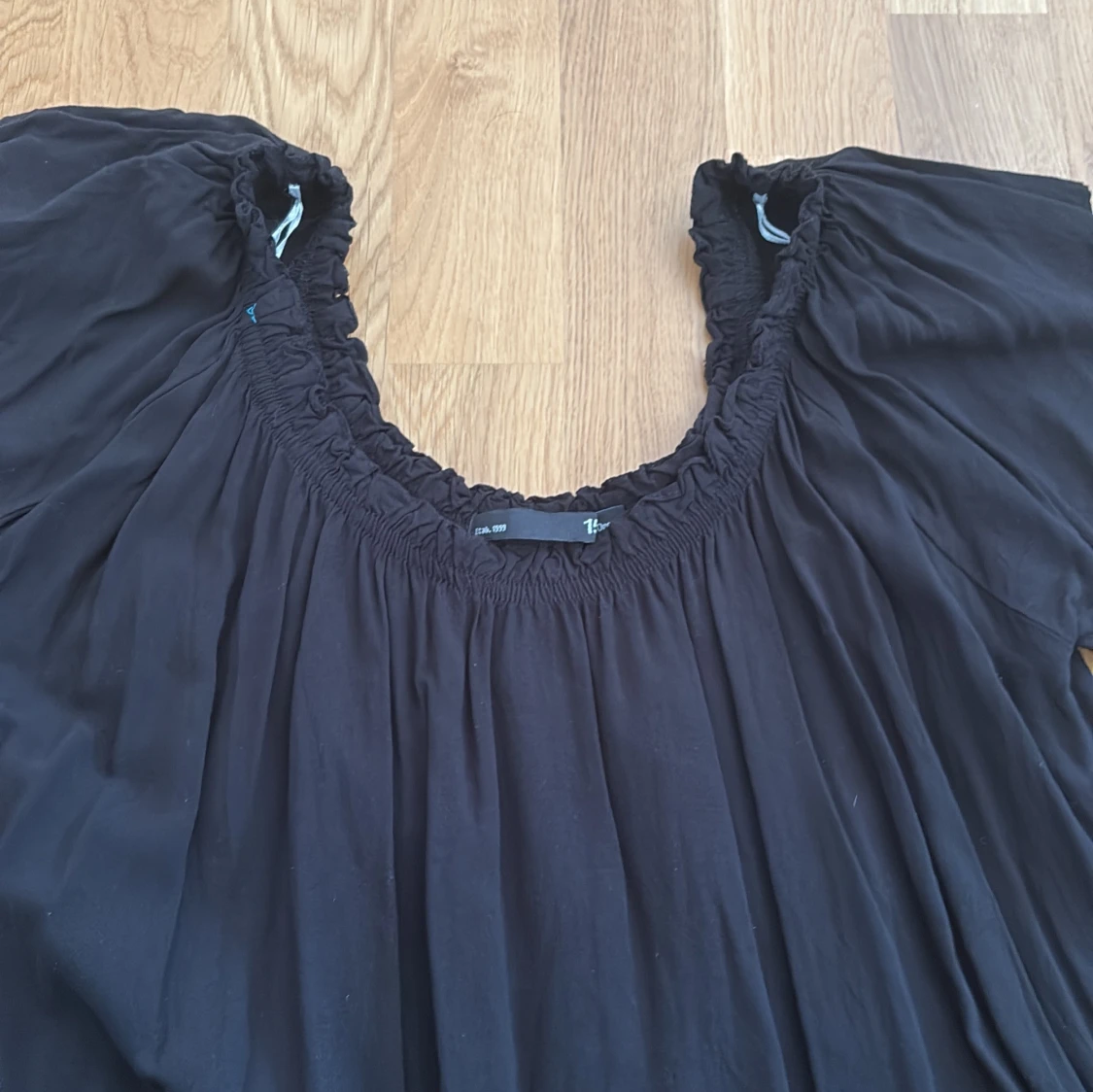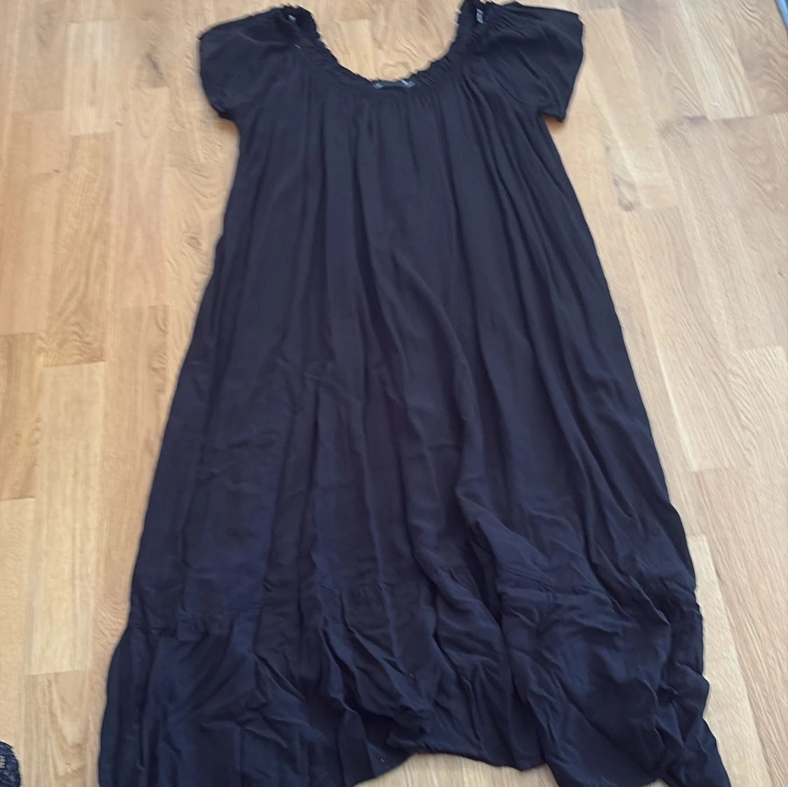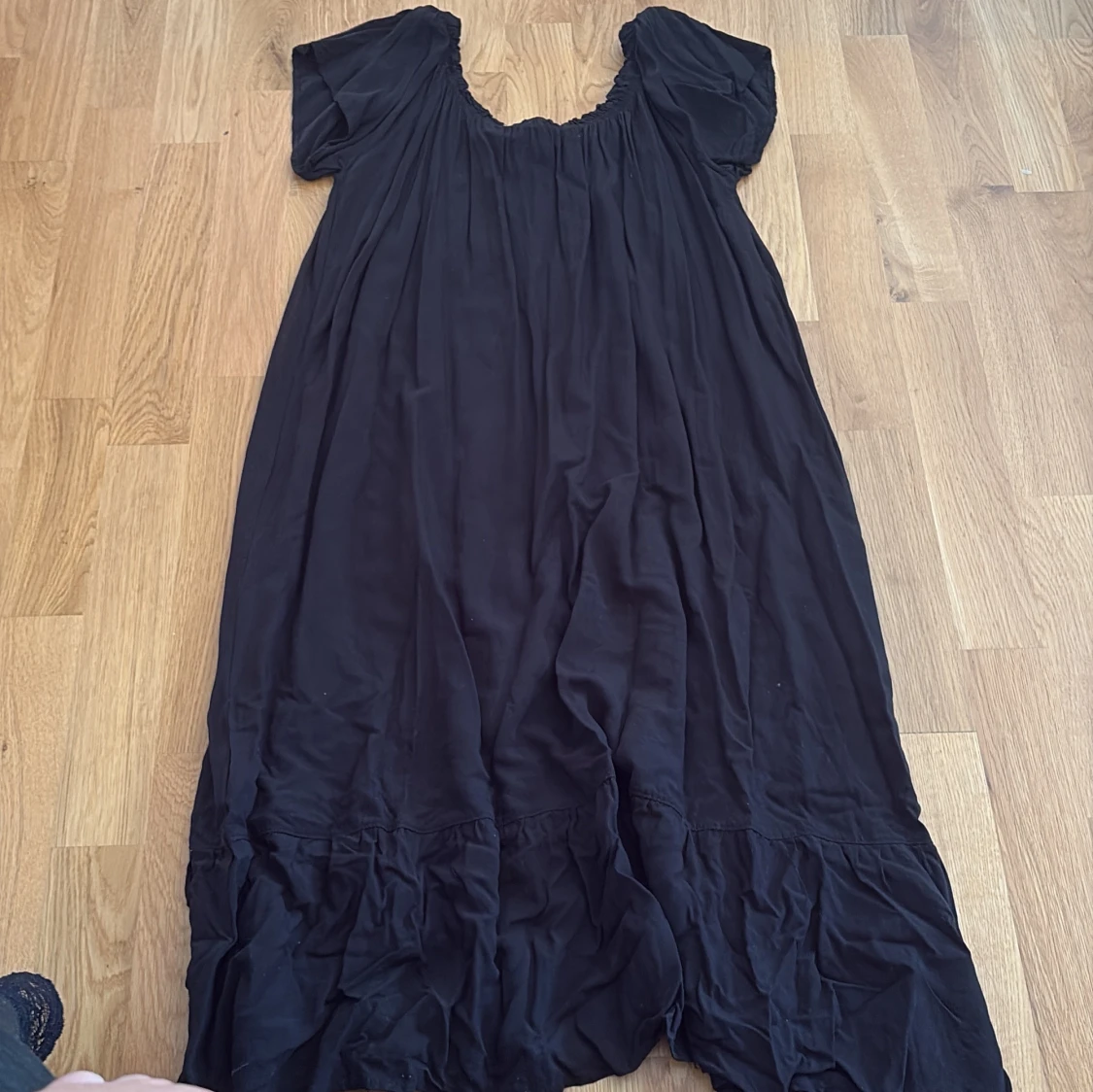 Svart långklänning med lös passform från 157. Klänningen har korta ärmar, rundad och rynkad halsringning samt ett luftigt fall. Perfekt för dig som gillar en enkel och avslappnad stil. Materialet känns lätt och svalt.