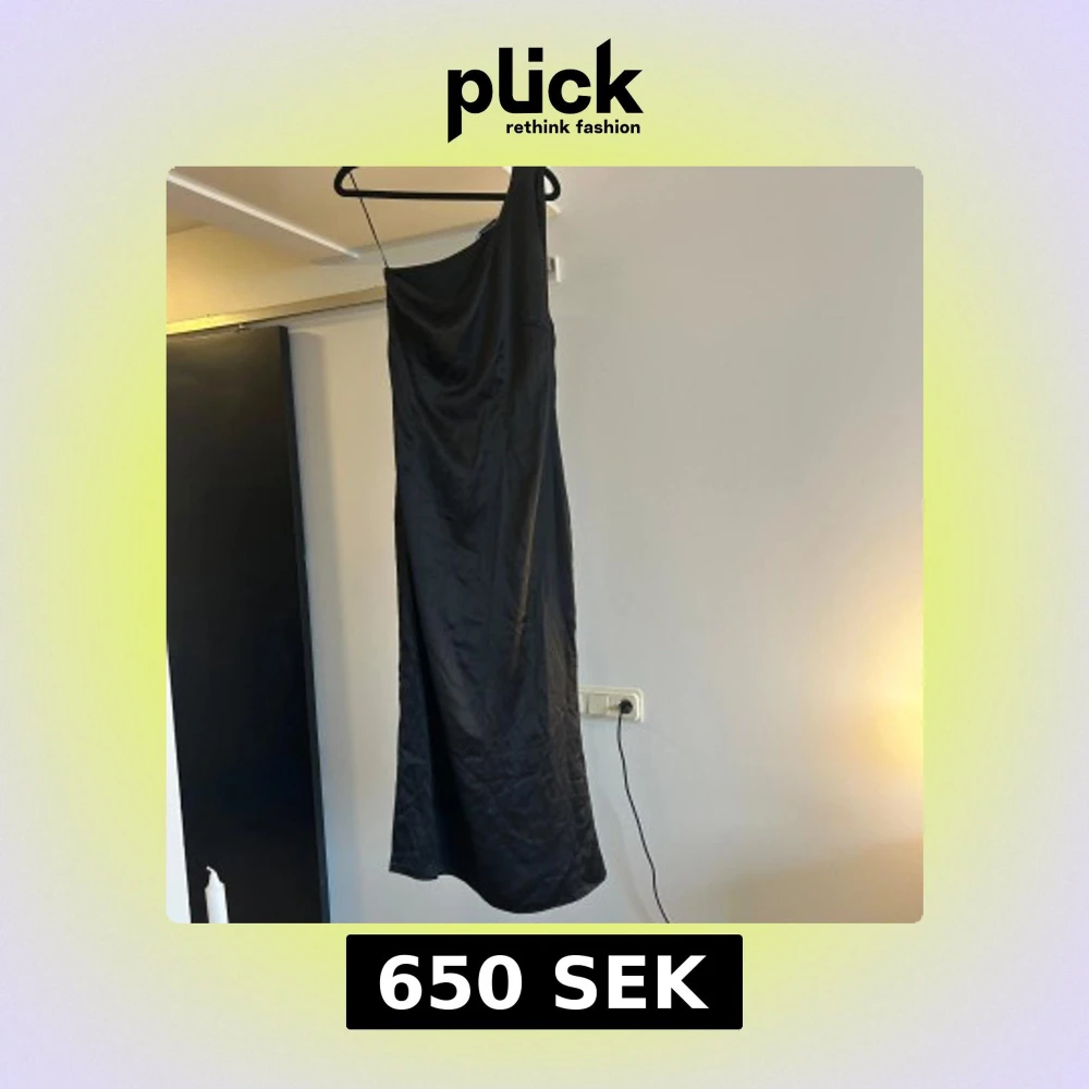 Snygg svart långklänning från Adoore i slätt, glansigt material. Endast använd en gång. Klänningen har en oneshoulder-design med ett smalt axelband och en elegant drapering över axeln. Passformen är normal och klänningen har en stilren, minimalistisk look som känns modern och chic.
