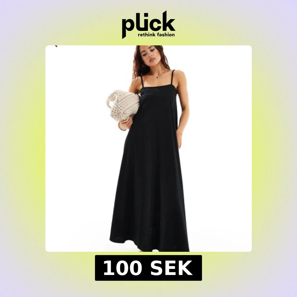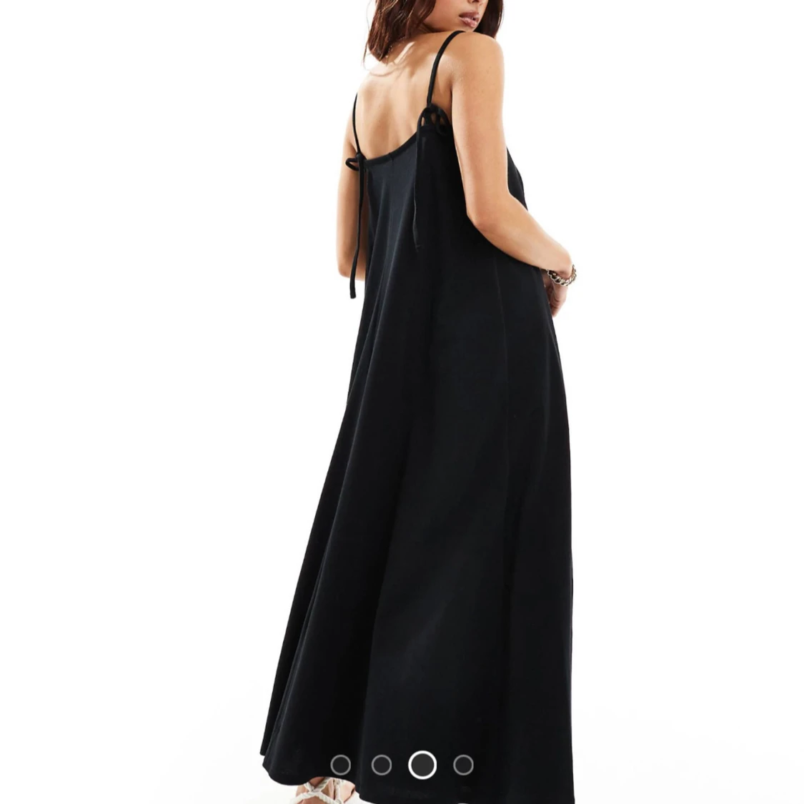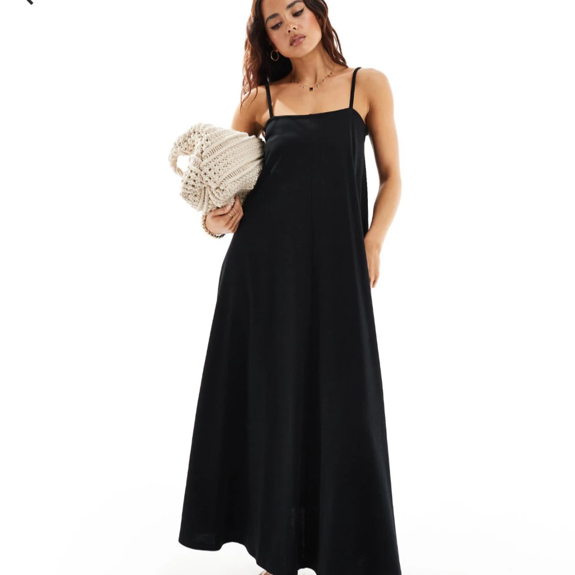 Svart långklänning med smala axelband och lätt utställd passform från ASOS DESIGN. Klänningen har en enkel och stilren look med tunna band som knyts på axlarna. Helt ny och oanvänd.