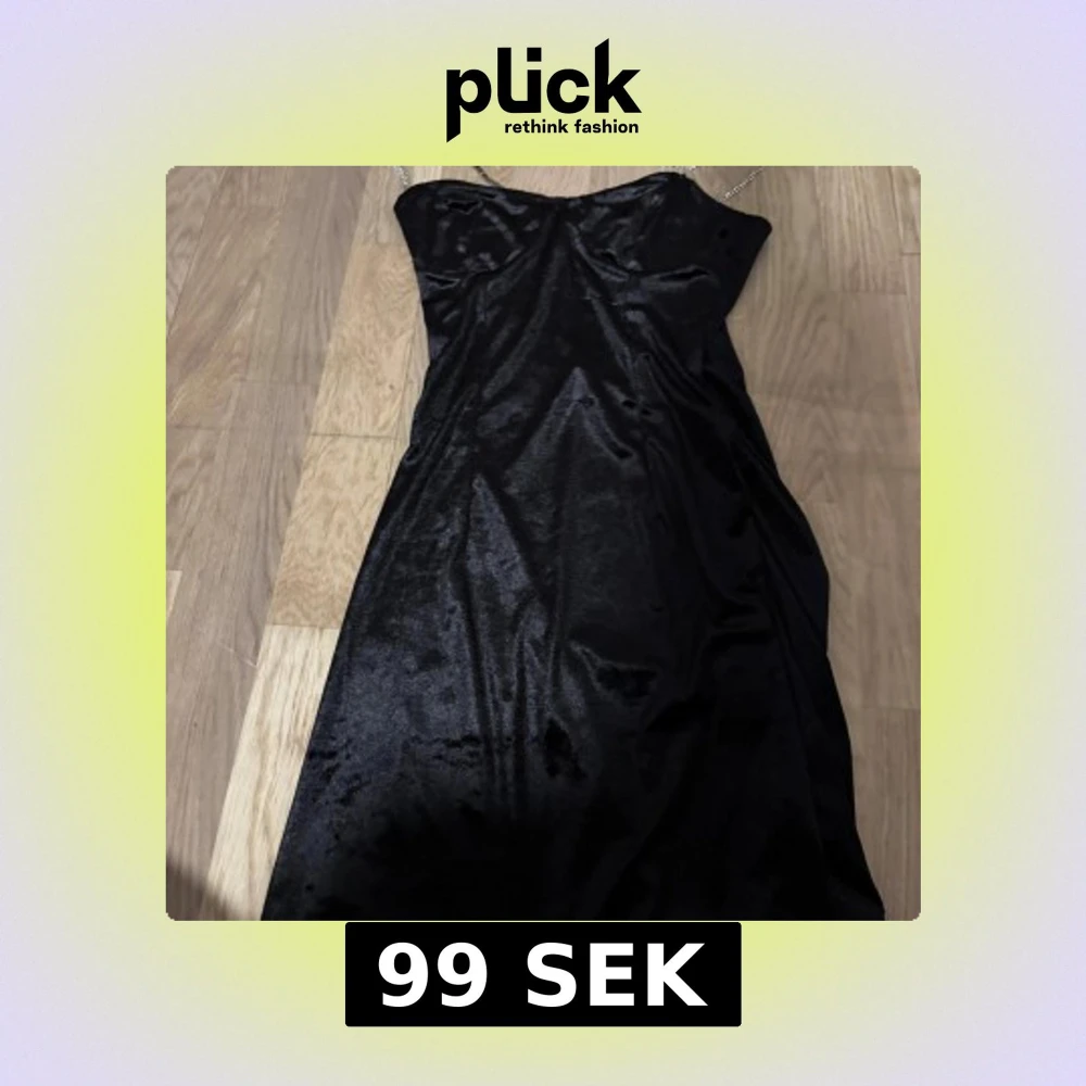 Supersnygg svart långklänning från Divided med glansigt tyg och smala axelband i kedjedesign. Klänningen har en figurnära passform upptill och smock i ryggen för extra komfort.