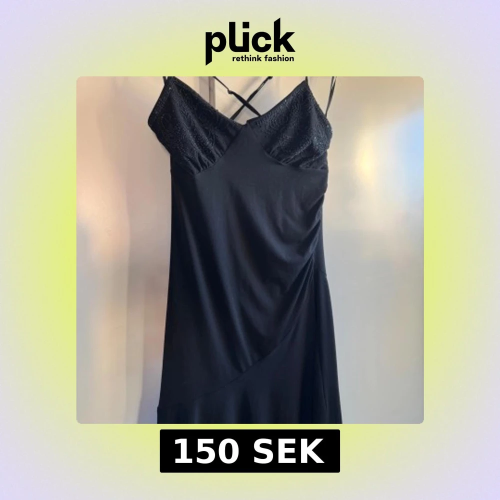 Elegant svart kort klänning från Glance med tunna axelband som korsas i ryggen. Överdelen har vackra broderier och pärlor som ger en lyxig känsla. Klänningen har en mjuk, följsam passform och är perfekt för dig som vill sticka ut med stilrena detaljer. Aldrig använt klänningen köptes secondhand!