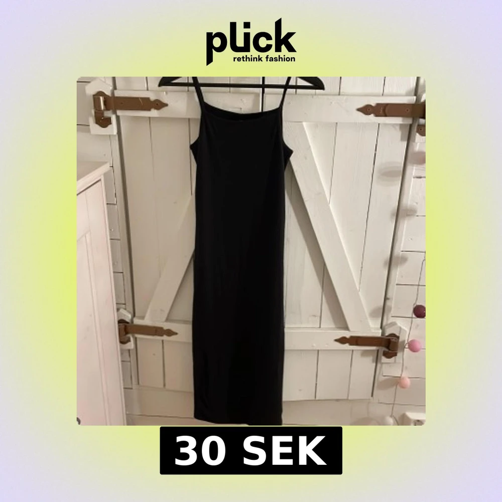 En stilren svart långklänning från H&M med smala axelband. Klänningen har en enkel design med slits nertill på ena sidan.