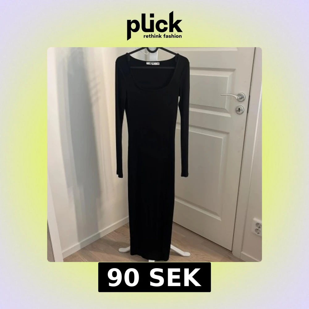 Säljer en svart långklänning från NA-KD med rund halsringning och långa ärmar. Klänningen är ribbad och har en slits framtill för extra rörelsefrihet. Perfekt för dig som gillar en stilren och enkel look.🌺