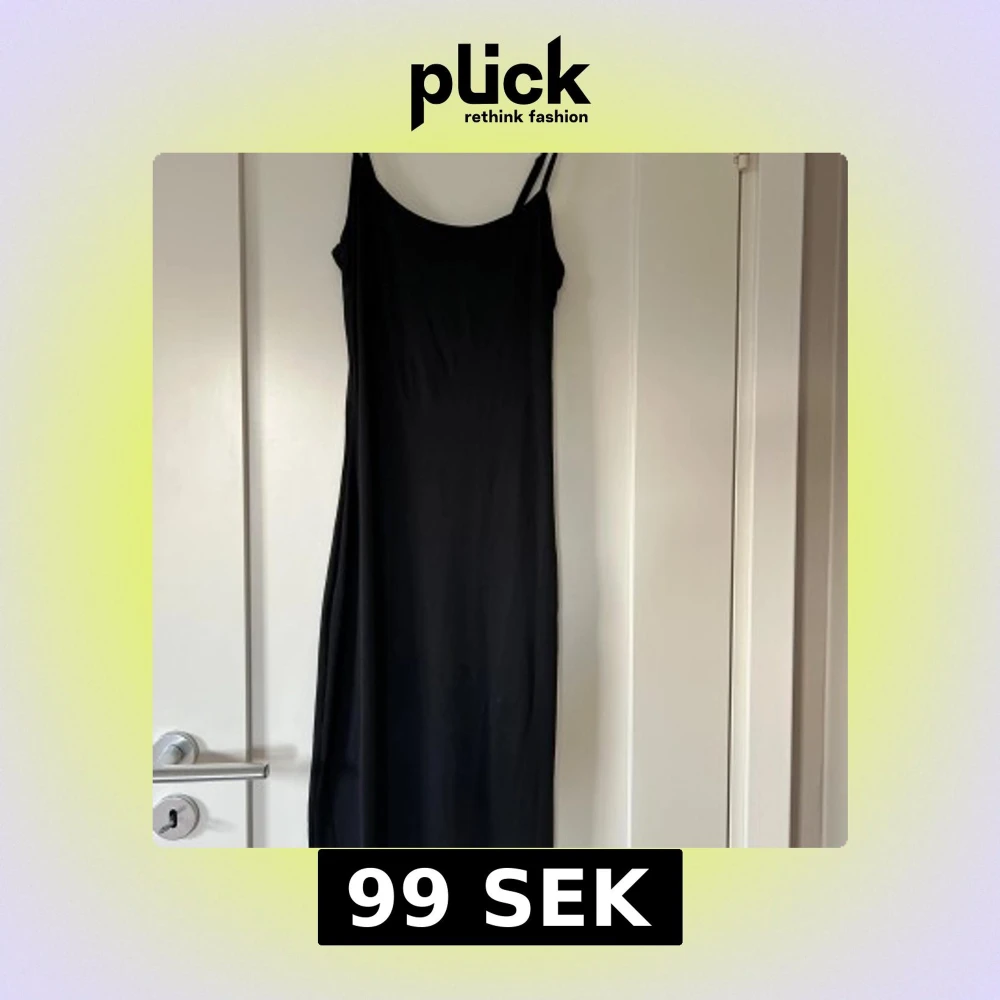 Säljer en svart långklänning från NA-KD i storlek XS. Klänningen har smala axelband och en figurnära passform med enkel, stilren design. Materialet är mjukt och följsamt, perfekt för dig som gillar minimalistisk stil och vill ha en klänning som sitter snyggt.