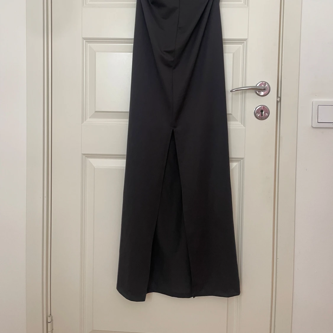 Svart långklänning från NA-KD med en tight passform och ärmlös design. Klänningen har en slits på baksidan. Materialet är mjukt och följsamt.