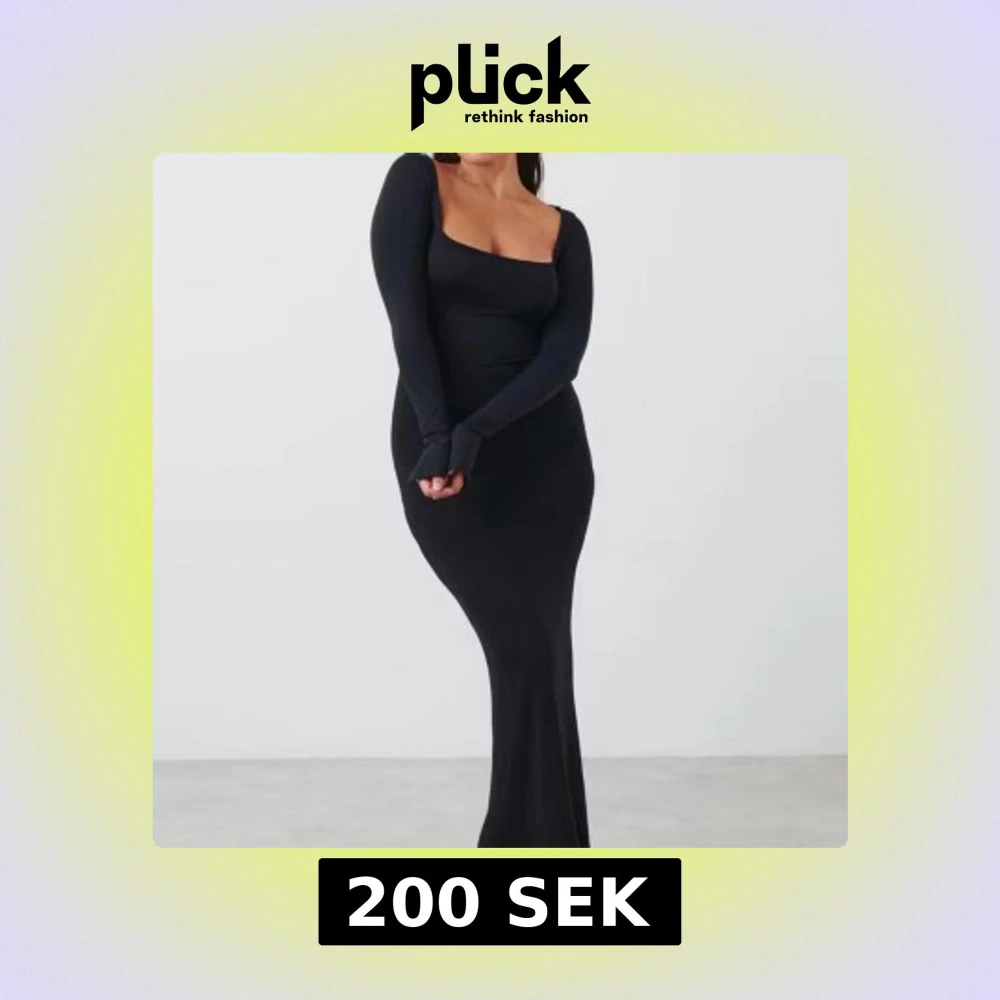 Svart långklänning från Gina Tricot med fyrkantig ringning och långa ärmar. Mjuk och stretchig.