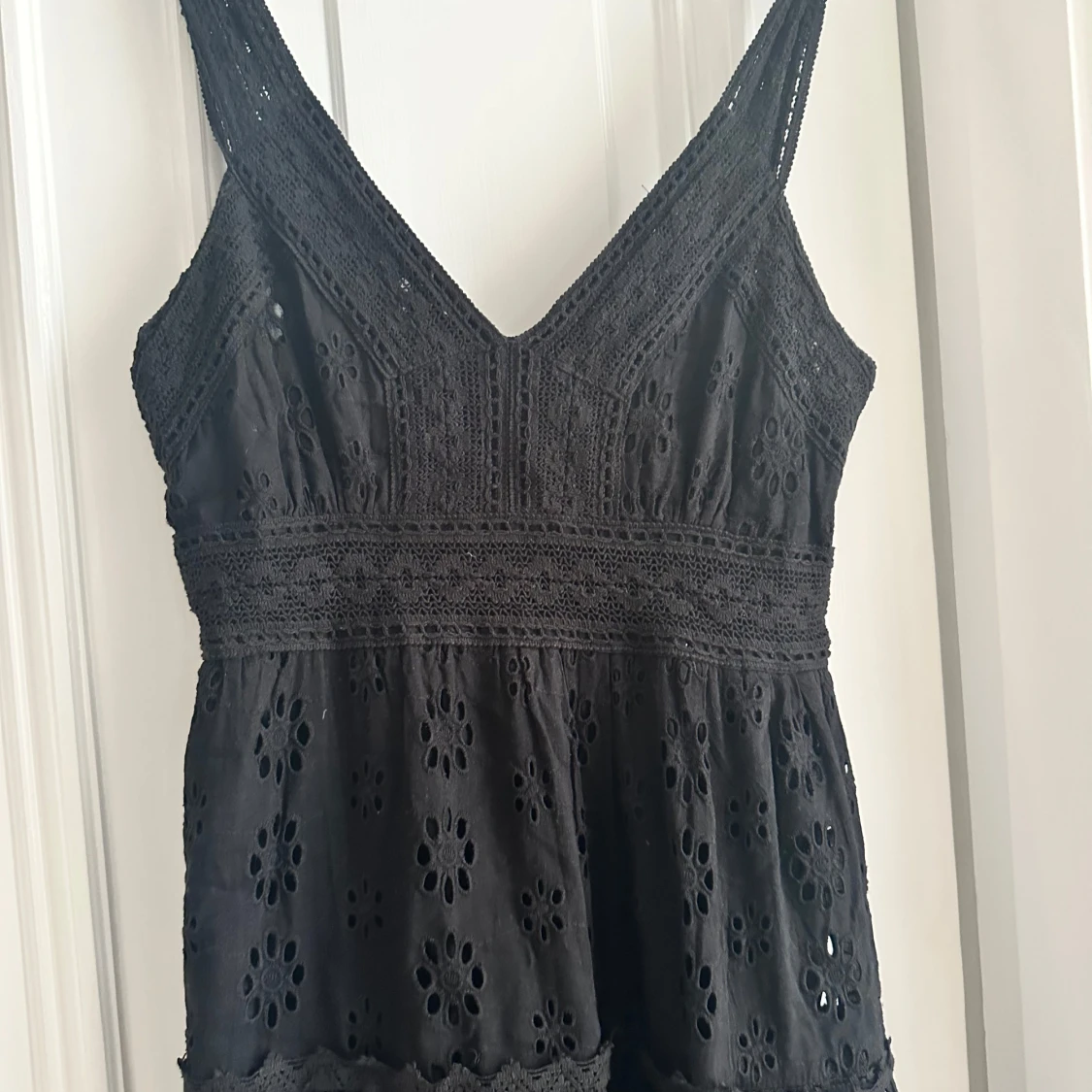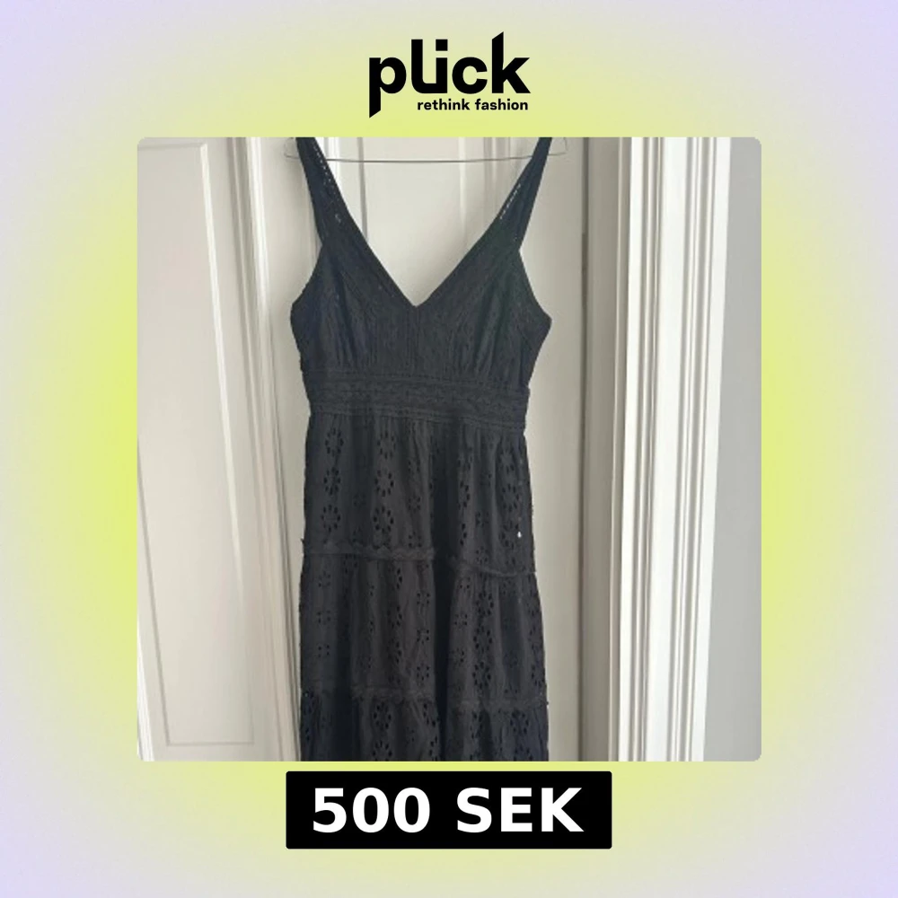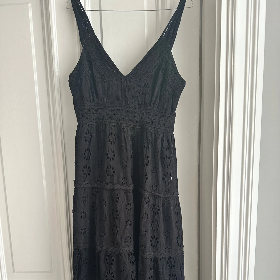 Supersöt svart långklänning från Fresh Cotton med broderade blommor och v-ringning. Strl S, men passar M