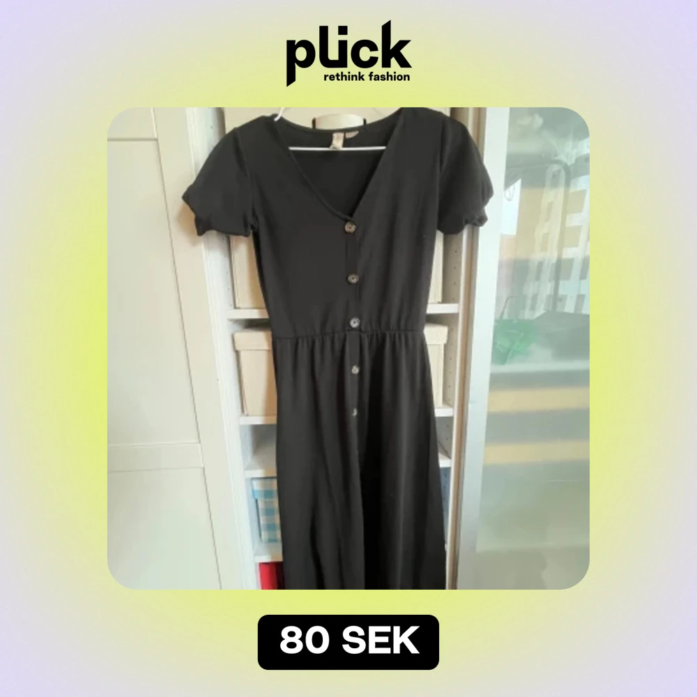 Svart långklänning med knappar och korta ärmar. Från H&M, storlek xs.