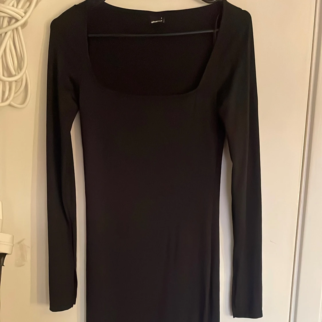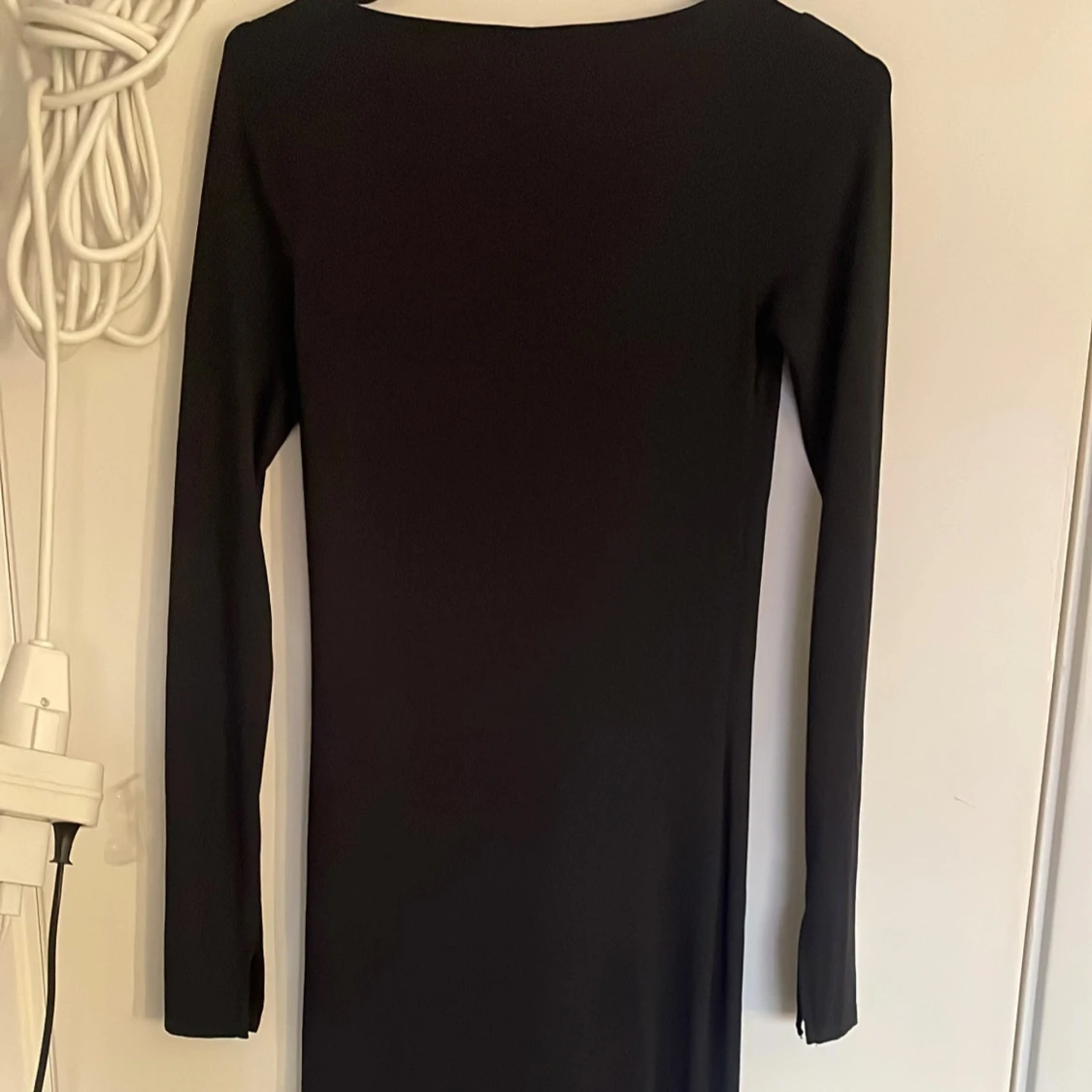 En stilren svart långklänning med lång ärm och figurnära passform. Perfekt för dig som gillar minimalistisk och tidlös stil. Klänningen har rund halsringning och är tillverkad i ett stretchigt material som sitter snyggt på kroppen. Klänningen går ända ner till fötterna