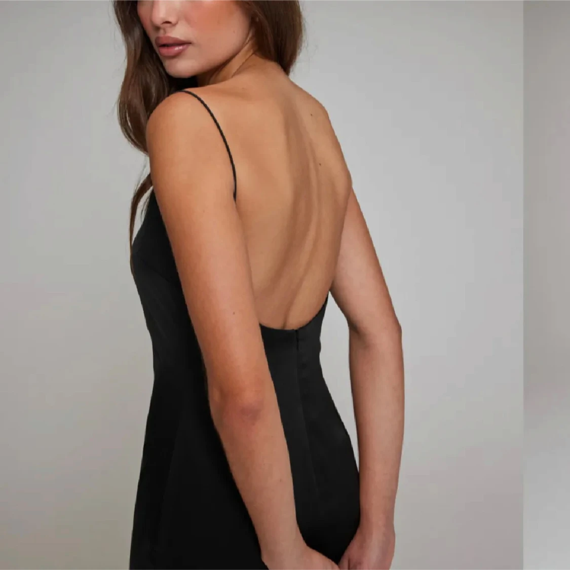 Svart balklänning i satin! Slutsåld på Nellys hemsida. Använd 1 gång. Strl 34 🌷
