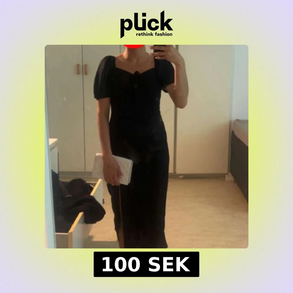 Supersnygg svart långklänning med puffiga kortärmar och söt snörningsdetalj vid bysten. Klänningen har en figurnära passform och fyrkantig urringning som ger en elegant vibe. Perfekt för dig som vill sticka ut med en klassisk men trendig look.