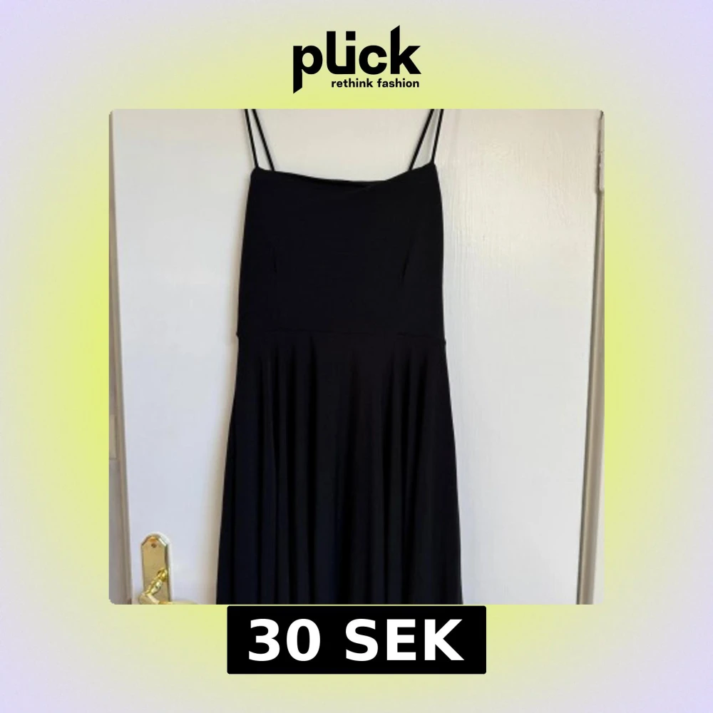 Svart långklänning med tunna axelband och stilren siluett. Klänningen har en mjukt fallande kjol och korsade band i ryggen som ger en snygg detalj. Perfekt för dig som gillar minimalistisk och elegant stil. Materialet känns lätt och följsamt mot kroppen.