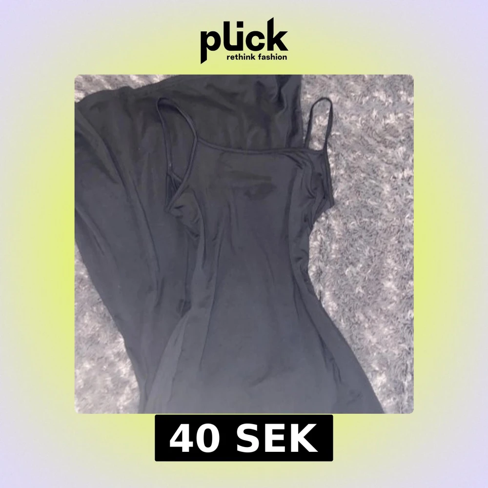 Svart långklänning med smala axelband och enkel, figurnära siluett. Klänningen är ärmlös och har en stilren design som passar dig som gillar minimalistiskt mode. Materialet känns mjukt och lätt mot huden, perfekt för varmare dagar. Den är lite sliten.