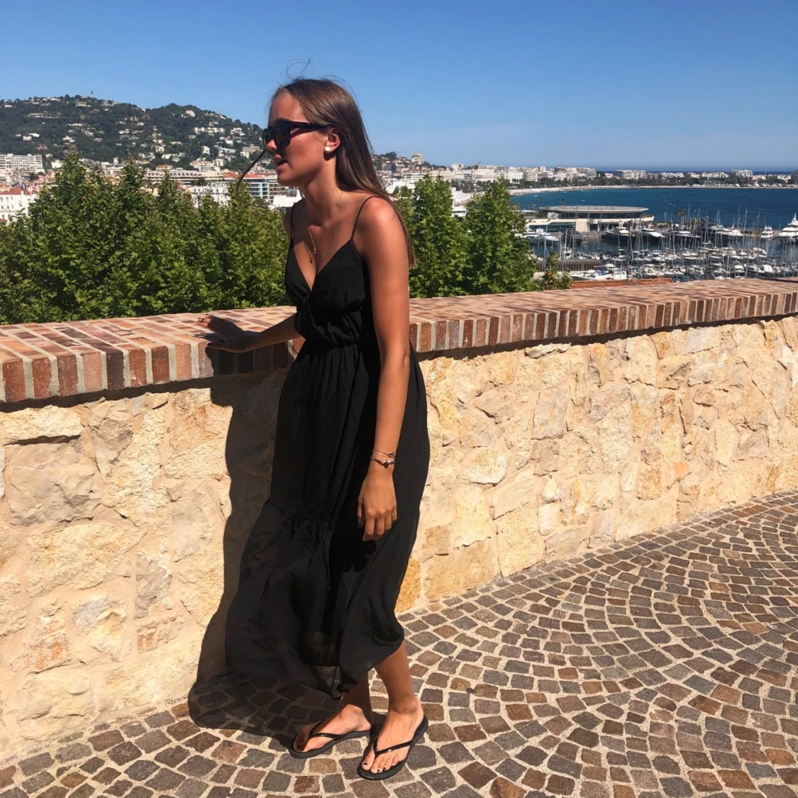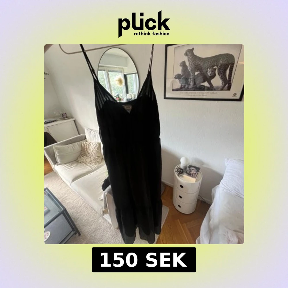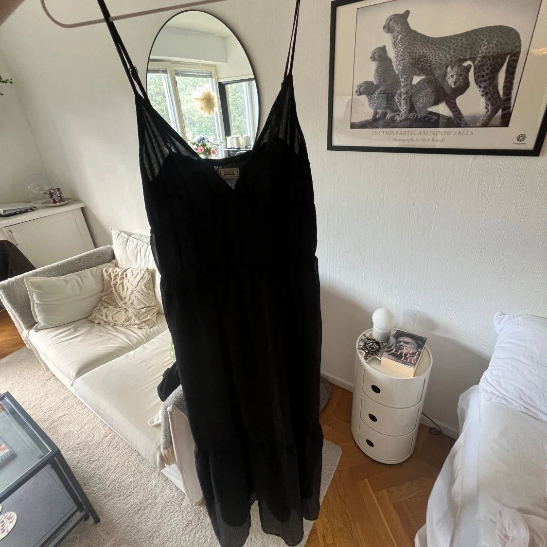 Svart långklänning med smala axelband och v-ringning från Pimkie. Bara använd några få gånger, så i väldigt fint skick!