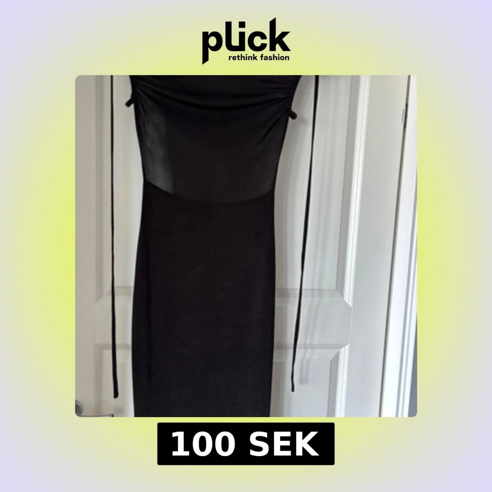 Säljer en svart långklänning med smickrande snörningsdetaljer på sidorna upptill. Klänningen har en tight passform och är tillverkad i ett glansigt, stretchigt material som ger en snygg siluett. Perfekt för dig som vill ha en stilren och elegant look. Med öppen rygg.