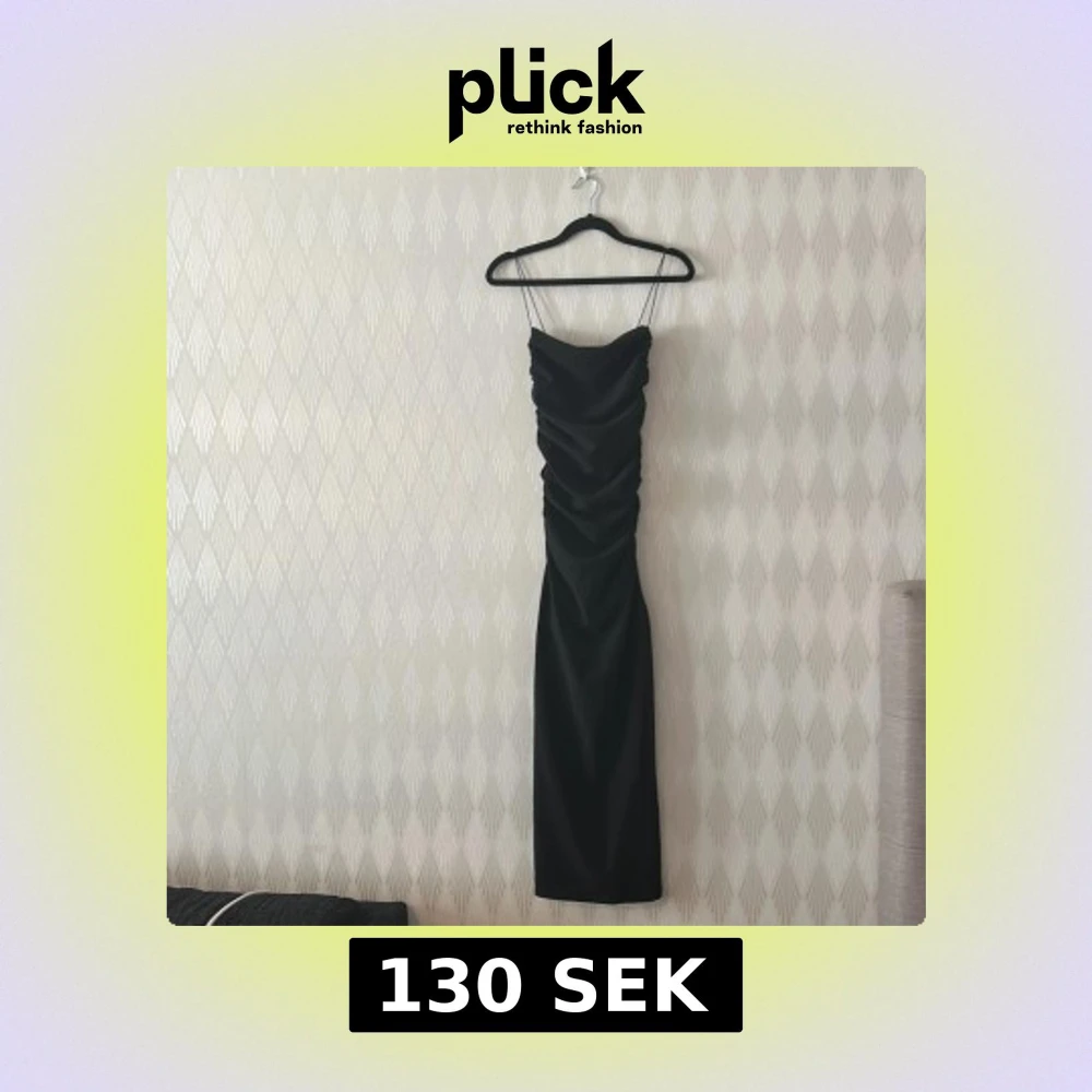 Supersnygg svart klänning till nästan ankeln med tunna axelband och draperad front. Klänningen har en tight passform och är perfekt för dig som vill ha en elegant och stilren look. Materialet känns mjukt och följsamt mot kroppen.