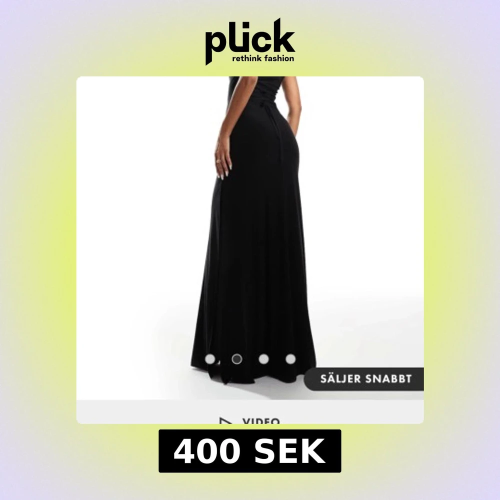 Elegant svart långklänning med en tight passform. Klänningen har en stilren design och är perfekt för festliga tillfällen. Den är ärmlös och har en smickrande siluett som framhäver figuren. Har både i storlek xs och s. Helt nya
