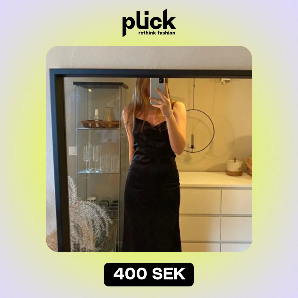 Superfin svart långklänning perfekt till balen eller likande. Lappen finns inte kvar, så vet inte vilken storlek det är, men jag har vanligtvis storlek S/36 och den passar mig bra. Så jag skulle säga att den är i storlek S.