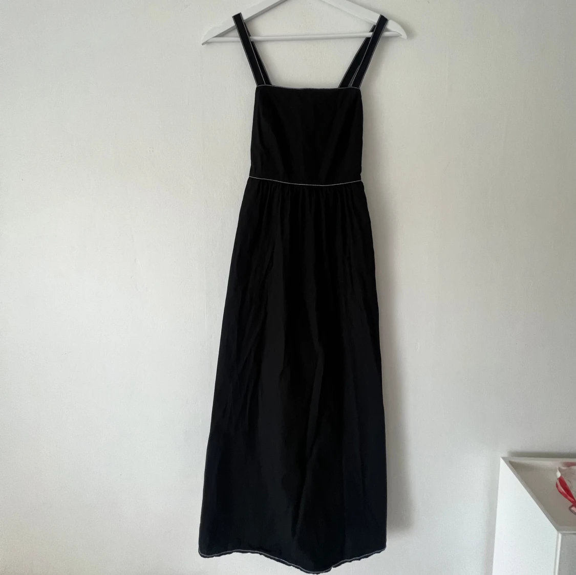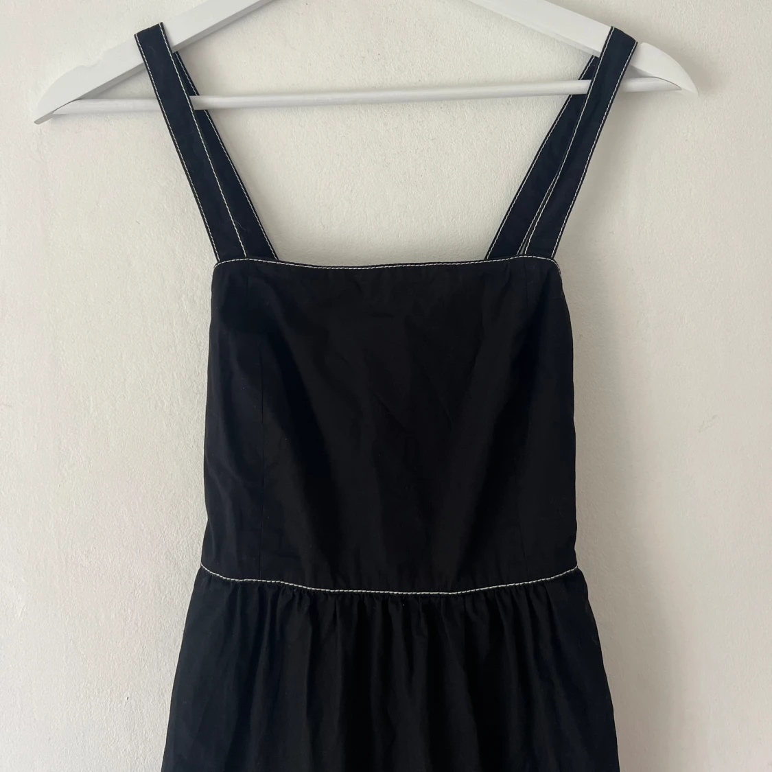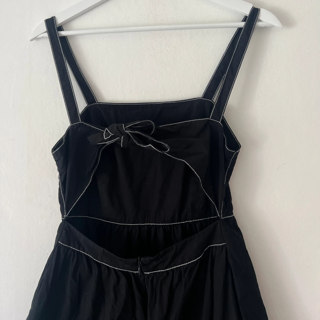 Jättesöt!! Med vita sömmar, öppen rygg & knytning, dragkedja i bak. Oanvänd, vara testad.