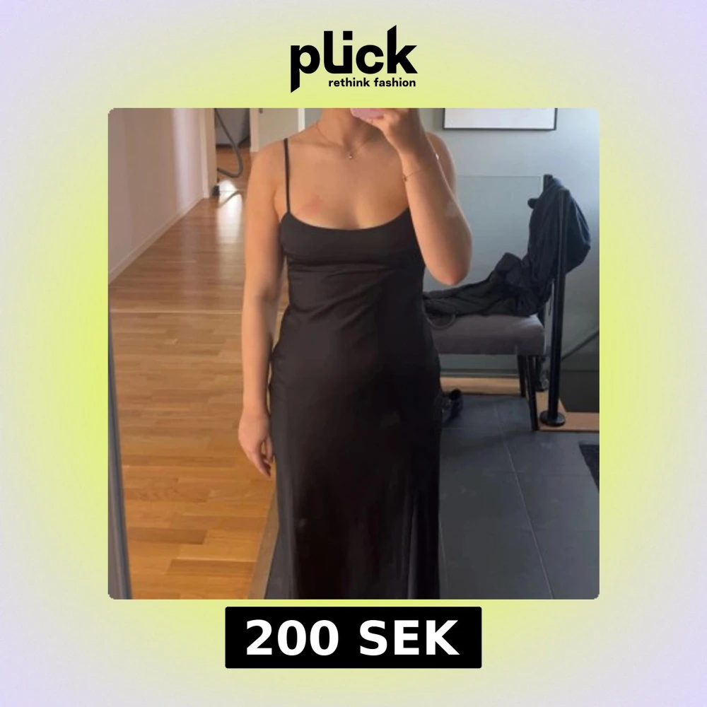 Svart satin långklänning med smala axelband från hm. Storlek S och går ner till anklarna på mig som är 167!!