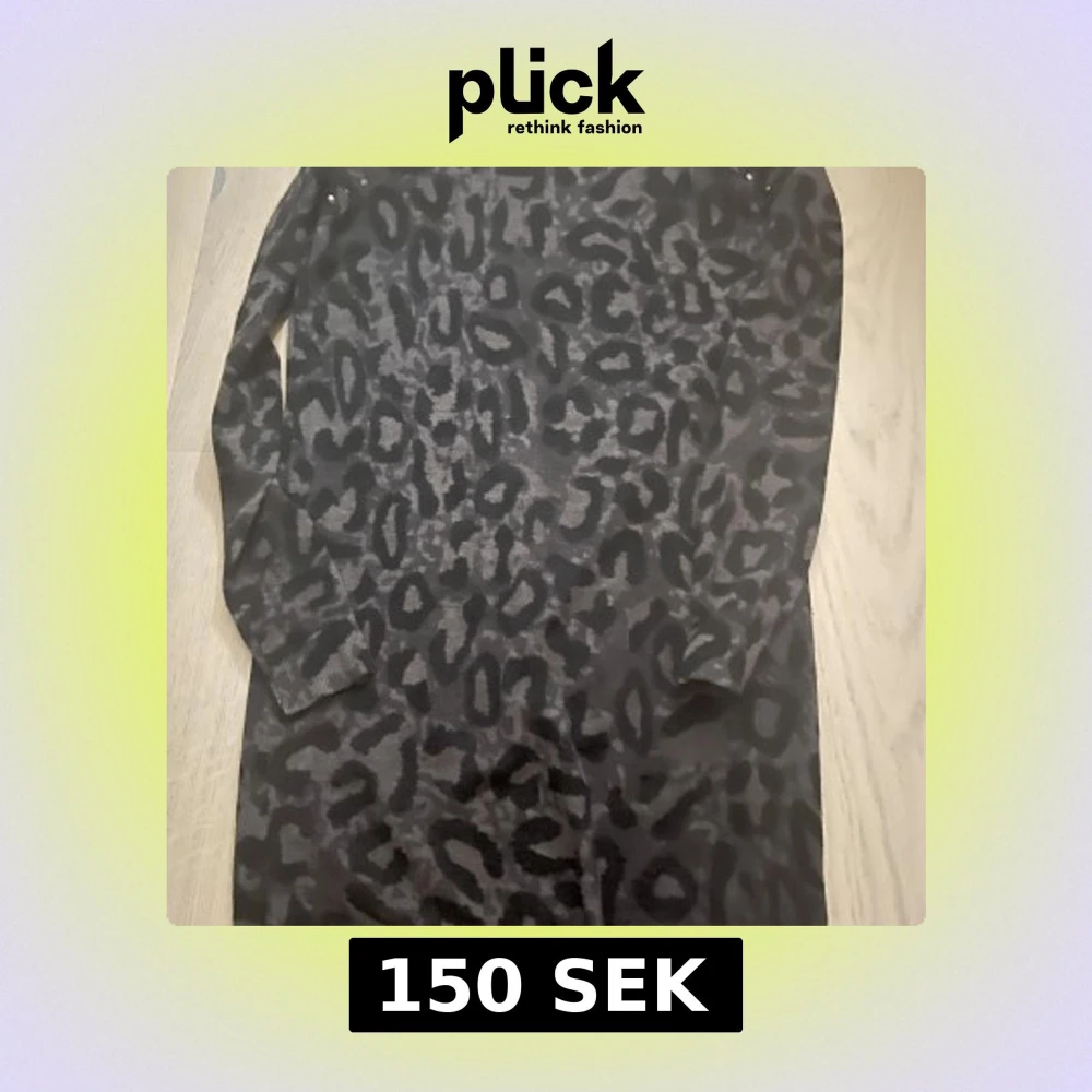 Snygg svart klänning med leopardmönster och långa Klänningen är tillverkad i ett mjukt material. Har typ aldrig använt 🩷