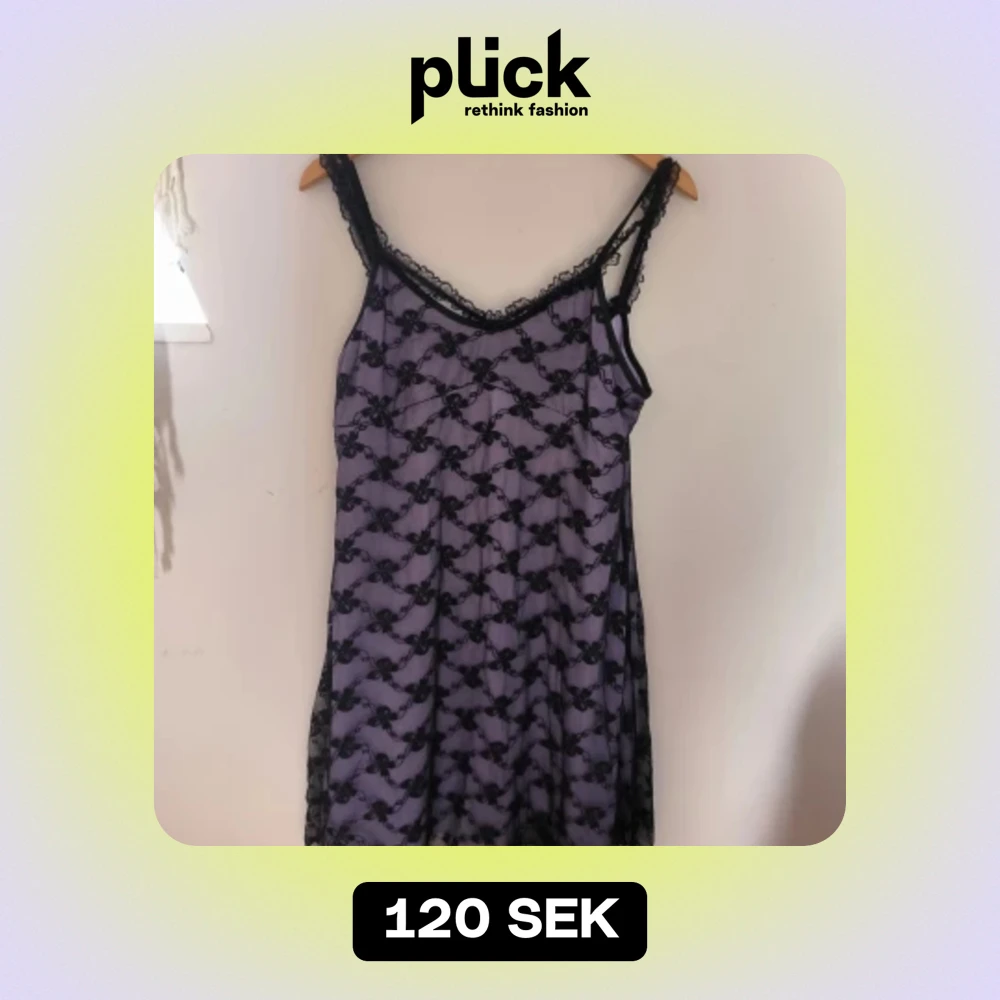 Lila och Svart Spets klänning med dubbel band och liten rosett. Aldrig använt och kan stretchas ut lite.