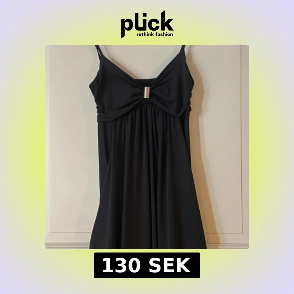 En svart kort klänning med en ”puffig” underdel. Den har en silverdetalj och ett väldigt skönt och lent material. Jag vet inte vilket märke den är ifrån tyvärr, men den är köpt på röda korset. Hör av dig om du har frågor eller är intresserad! 🥳🪩💃