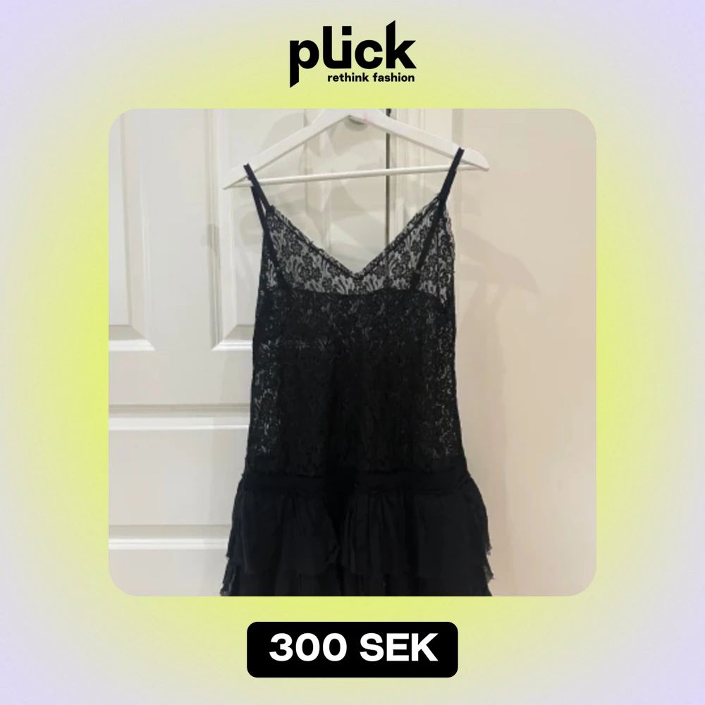 Så snygg miniklänning med spets och volanger samt justerbara band. Originellt köpt på beyond retro men använd ca 2 gånger av mig.