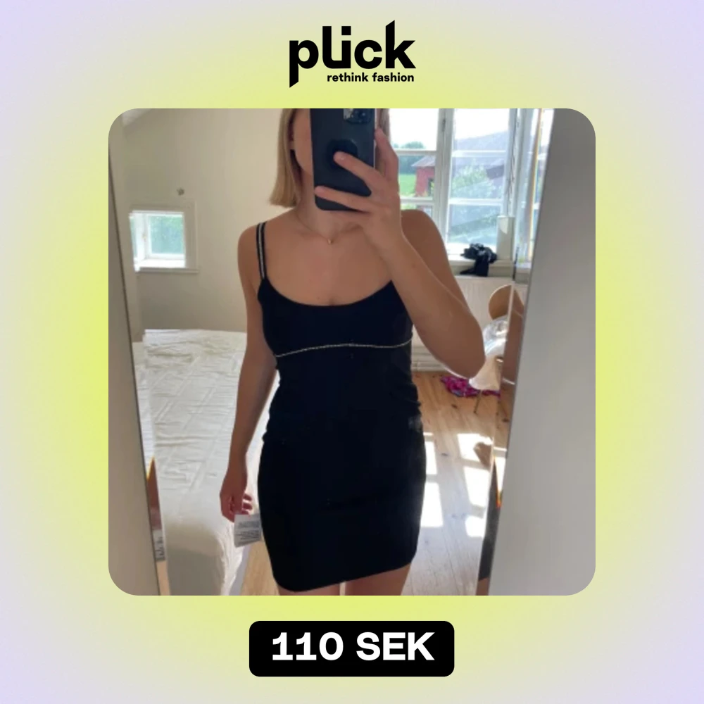 Supersnygg svart klänning! Överdelen och axelbanden har strassdetaljer. Klänningen sitter så himla fint! Aldrig använd, endast testat och har kvar en av lapparna. Är en storlek 38 men jag skulle säga att den sitter som en 36 eventuellt 36/38.🖤