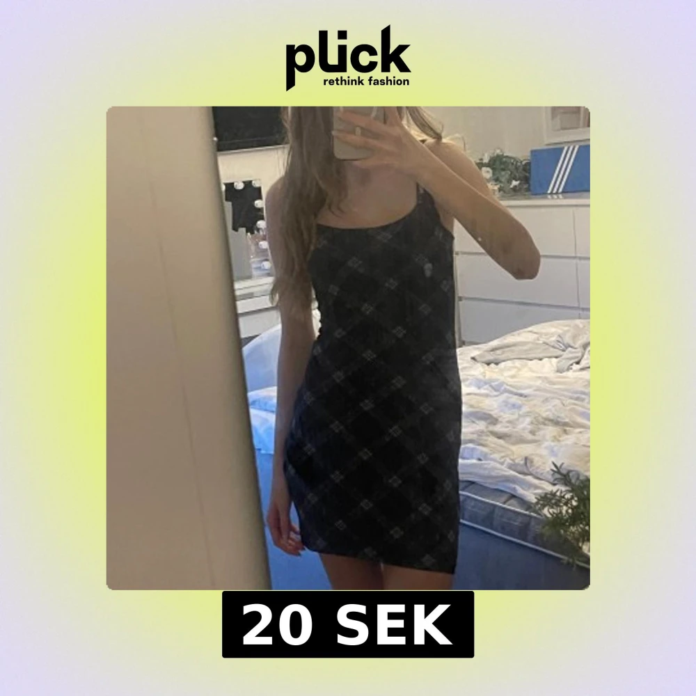 Snygg svart klänning med vitt rutmönster från H&M. Klänningen har en stilren design med smala axelband och är oanvänd. Den är tillverkad i ett mjukt och bekvämt material med två lager💕