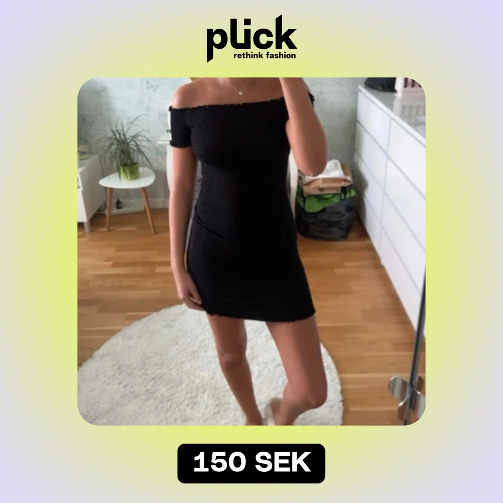 Jättefin svart off shoulder klänning från Gina tricot i xs🩷
