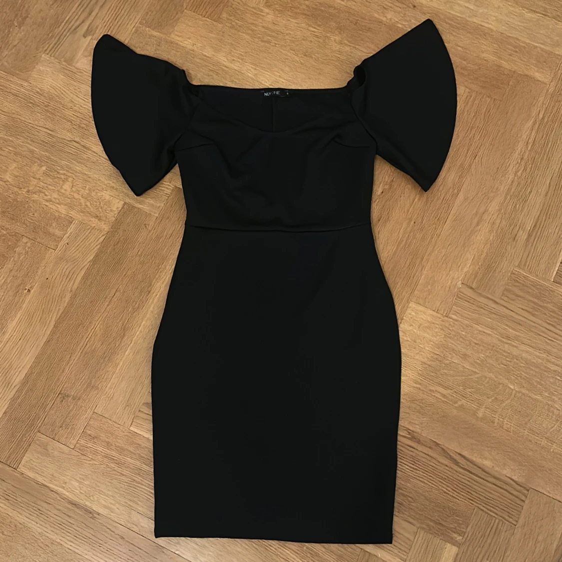 Supersnygg svart kortklänning från NLY Eve med offshoulder och vida, dramatiska ärmar. Figurnära passform som framhäver siluetten och ger en elegant look. Perfekt för dig som vill sticka ut med stilrena detaljer och modern design.