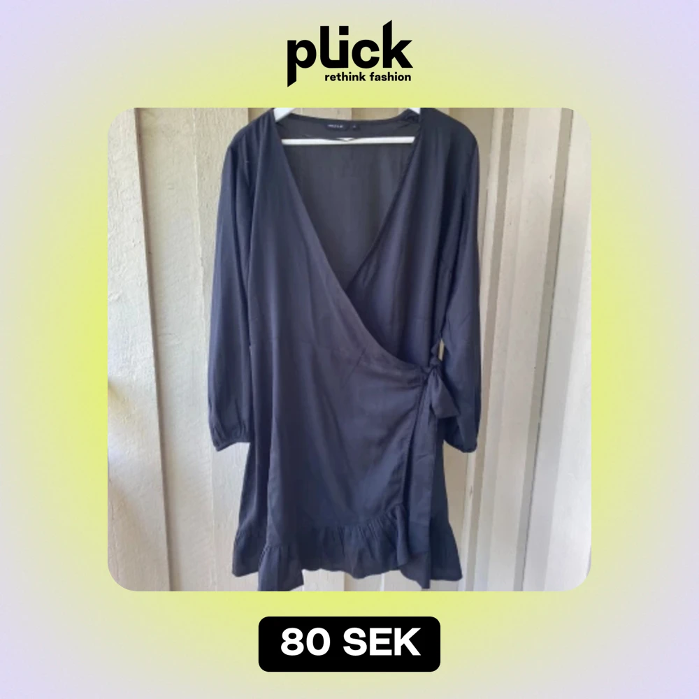 Svart omlottklänning som slutar vid mitten av låret🖤