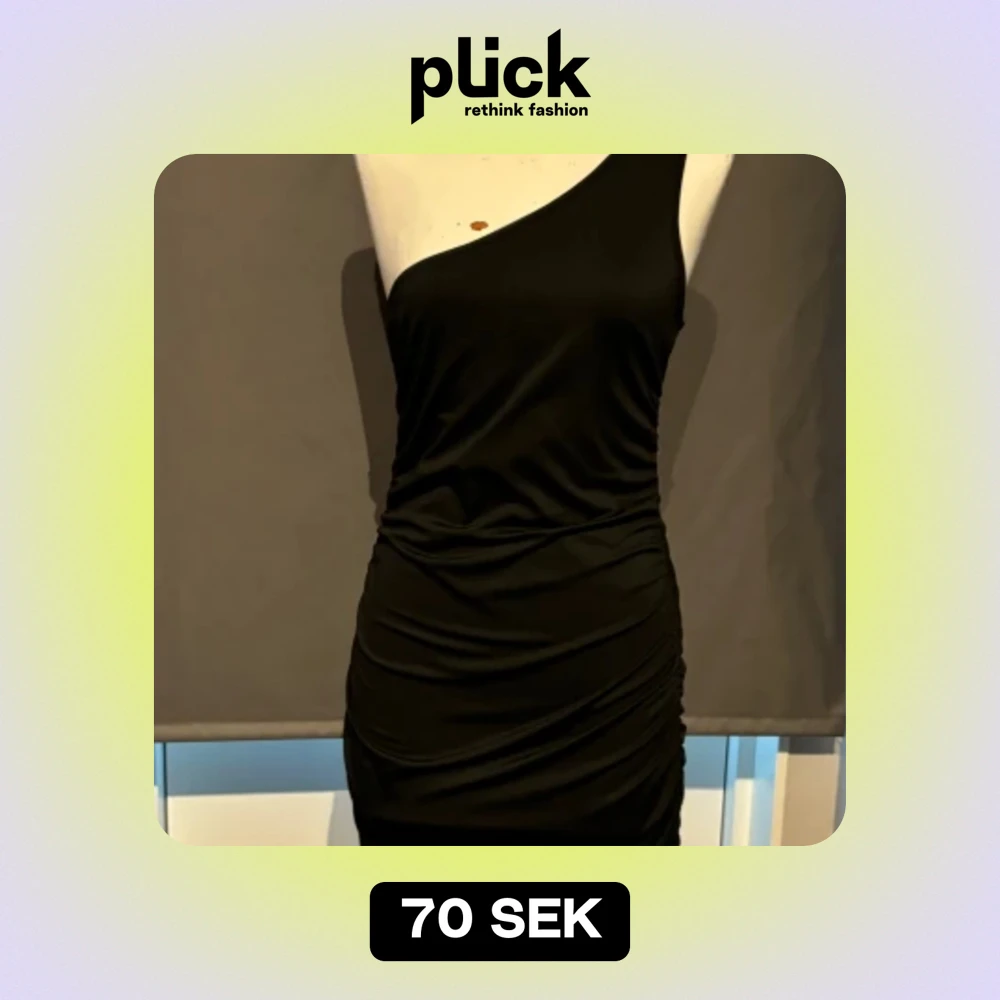 Säljer en snygg svart oneshoulder klänning. Den är tight och har en cool rynkad design som ger en extra touch. Perfekt för fest eller en utekväll! 🖤