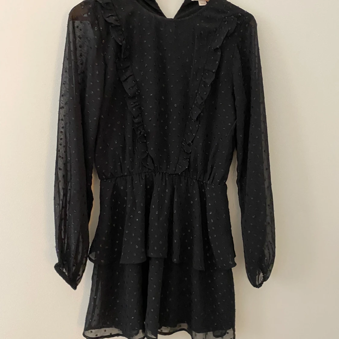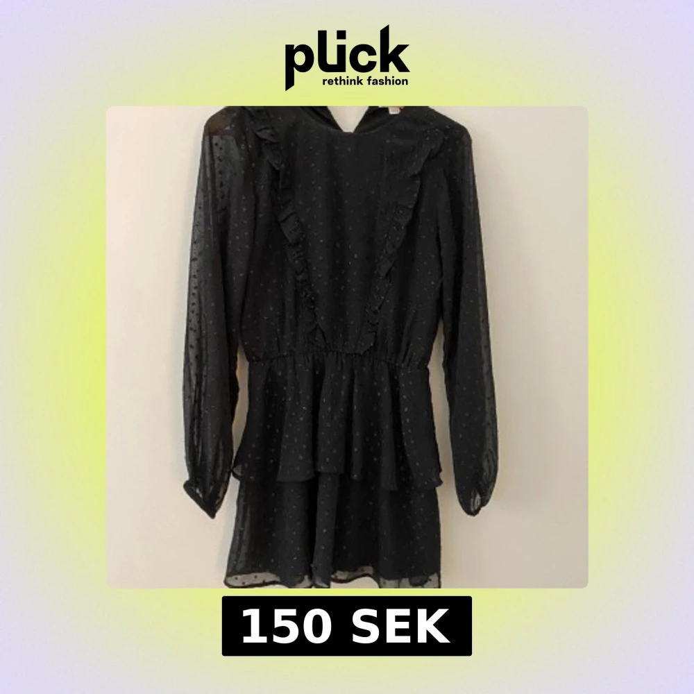 Supersöt klänning från Gina Tricot med små glitter prickar. Klänningen är använd och tvättad ett fåtal gånger🩷vid lappen finns en knapp som ska sättas ihop när du använder den🫶🏼