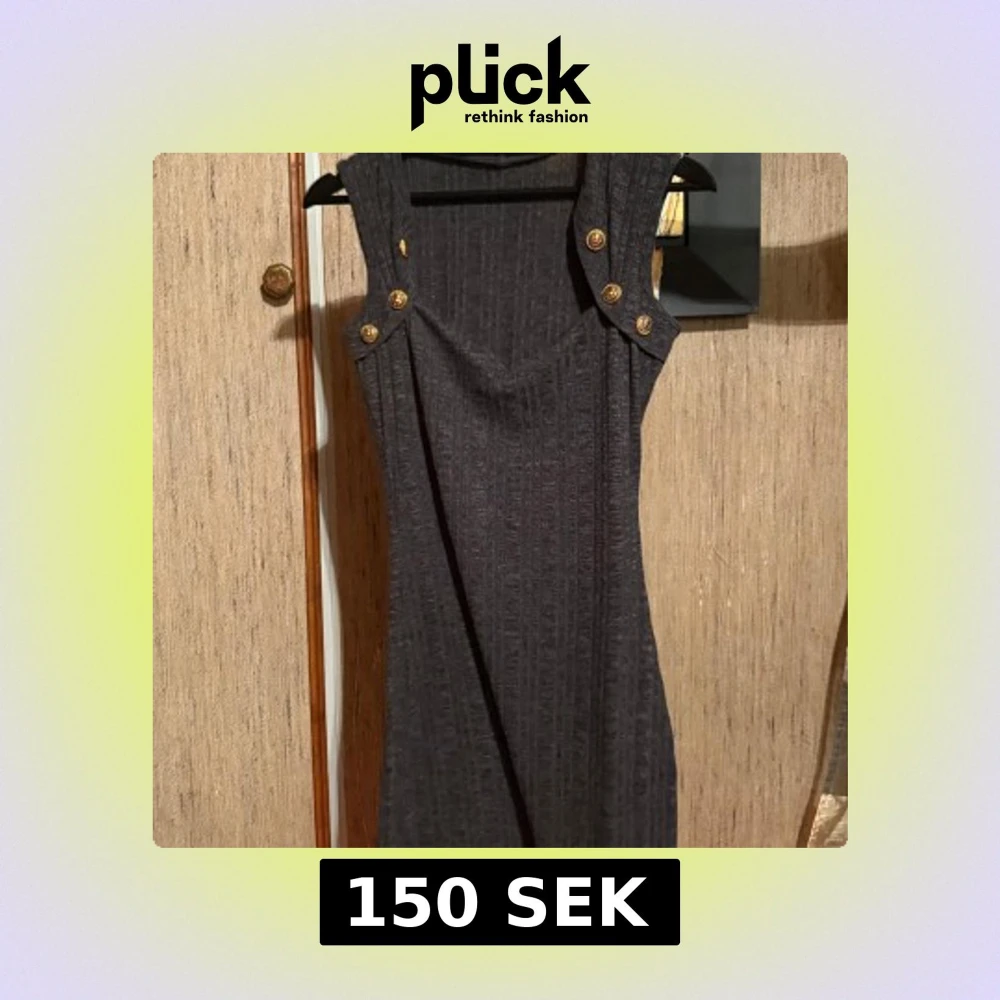Snygg svart ribbad klänning med markerade axelband och dekorativa guldknappar. Klänningen är ärmlös och har en kroppsnära passform som framhäver siluetten. Perfekt för dig som gillar stilrena detaljer och en modern look.