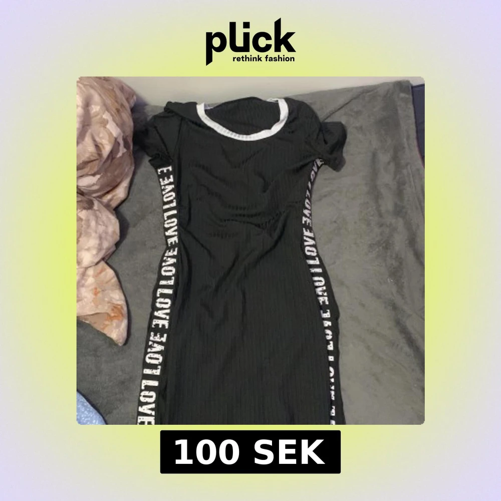 Svart ribbad kortklänning med vit kant vid halsen och texten 'LOVE' längs båda sidorna. Klänningen har korta ärmar och en sportig vibe, perfekt för dig som gillar streetstyle och tydliga detaljer. Från SHEIN har inte använt den bsrs typ 4 gånger