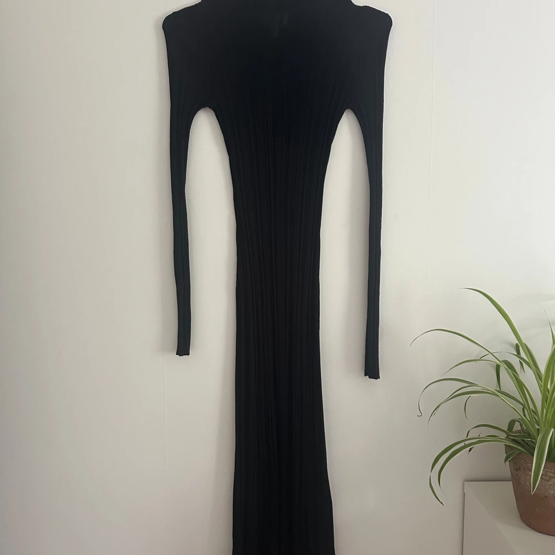Svart ribbad långklänning