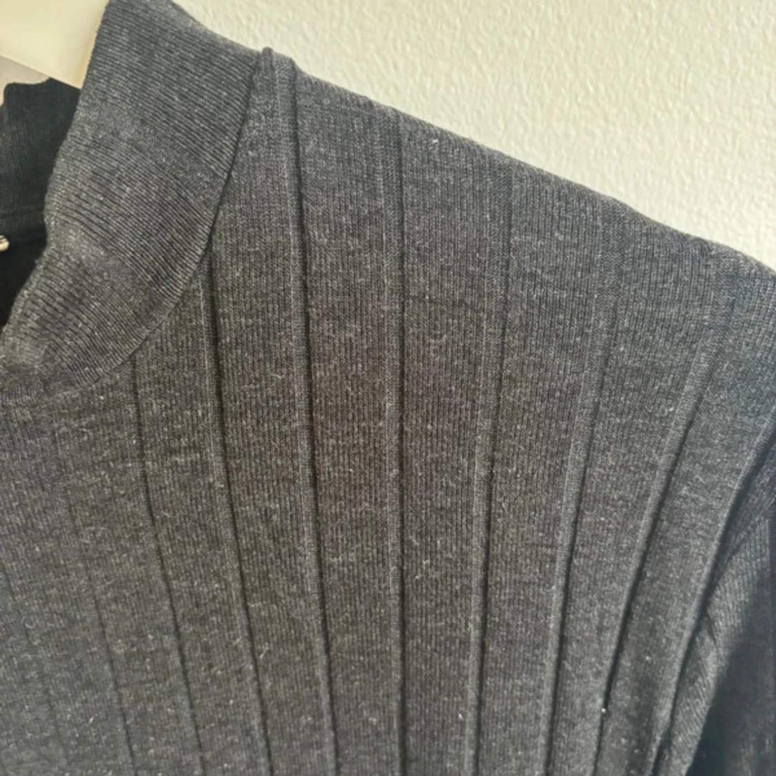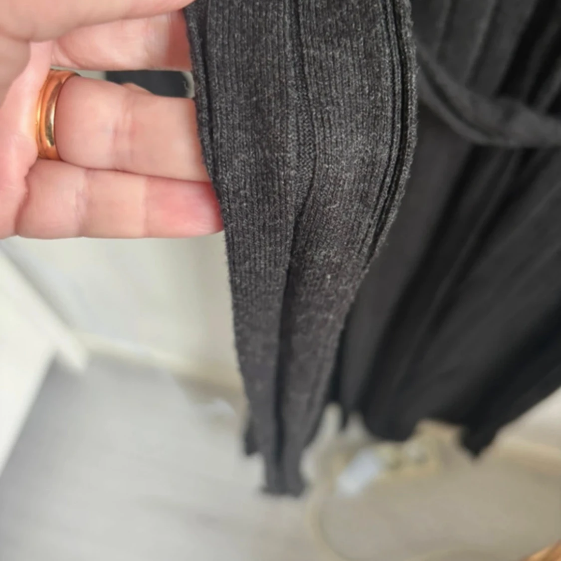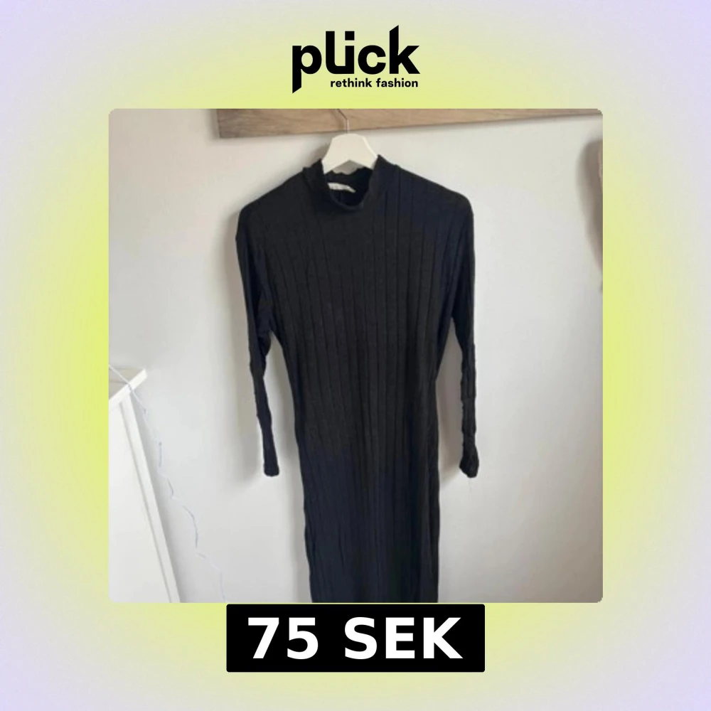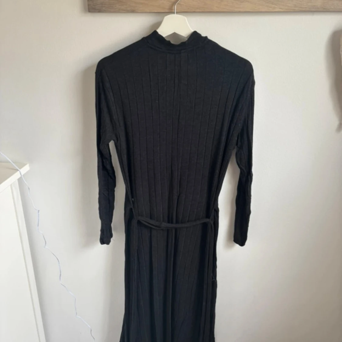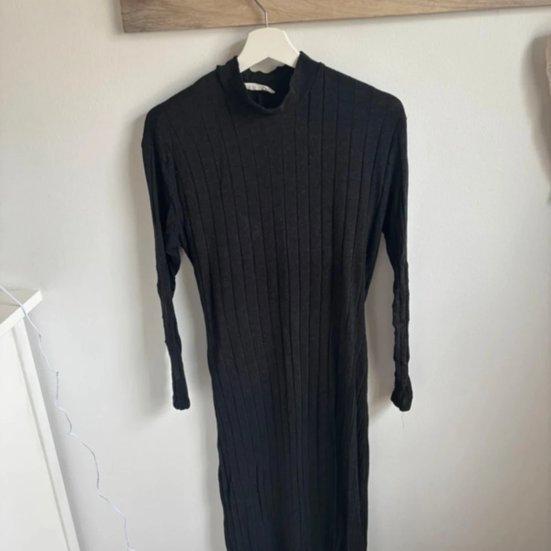 Svart långklänning från MNG med ribbad struktur och lång ärm. Klänningen har en hög krage och ett avtagbart bälte i midjan för extra form. Perfekt för dig som gillar en stilren och enkel look.