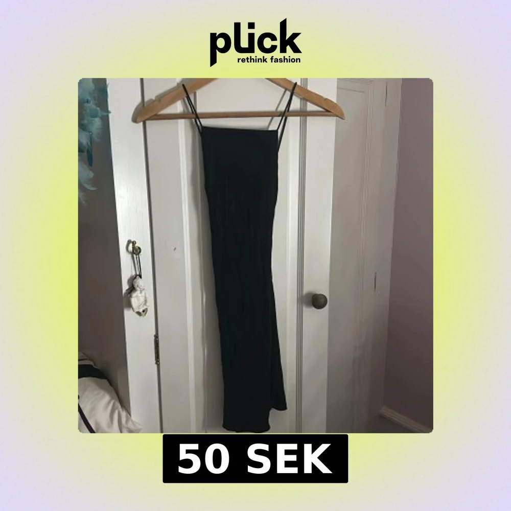 Svart långklänning med smala axelband som korsas i ryggen. Klänningen har en ribbad struktur och är figurnära med rak siluett. Perfekt för dig som gillar minimalistisk och stilren design. Jättefin klänning som man kan använd under festliga teman eller en middag, fråga om fler bilder så kan jag sätta på klänningen 🥰Använt endast 1 gång då den bara ligger i min garderob ‼️