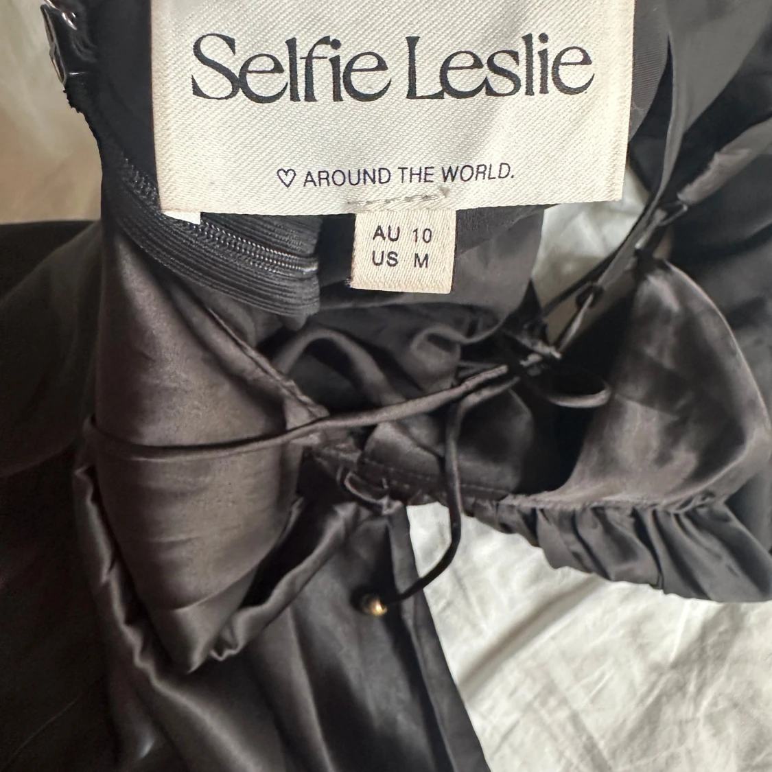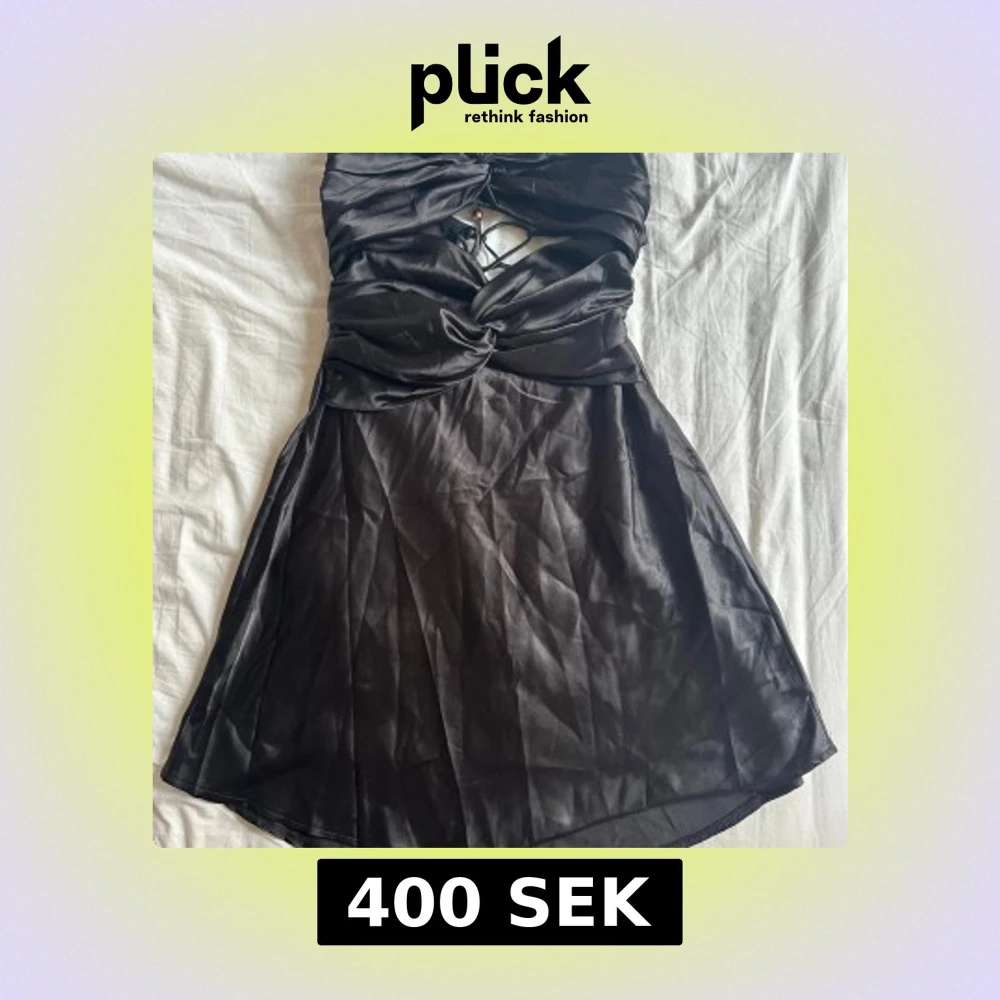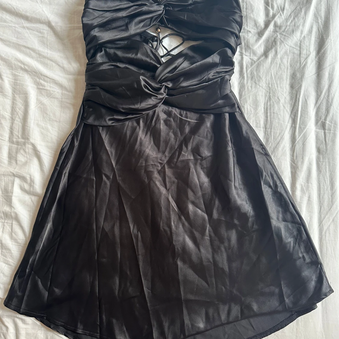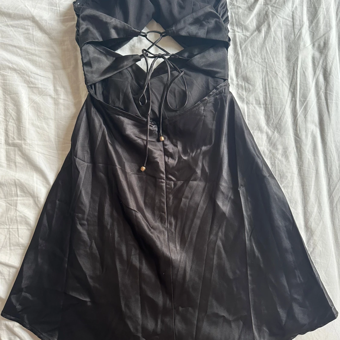 Supersnygg svart kortklänning från Selfie Leslie i satinliknande material. Klänningen har snörning och cut out-detaljer framtill och baktill, samt en twistad detalj vid bysten. Perfekt för dig som vill sticka ut med en trendig look.