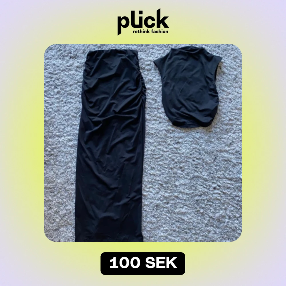 Säljer detta svarta set med en kjol och topp från shein då det var för stort för mig Aldrig använt, mycket bra skick Kjolen har även en slits baktill
